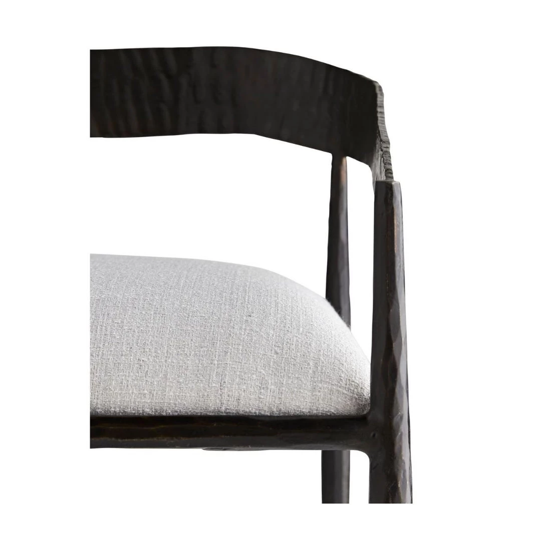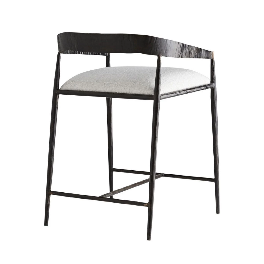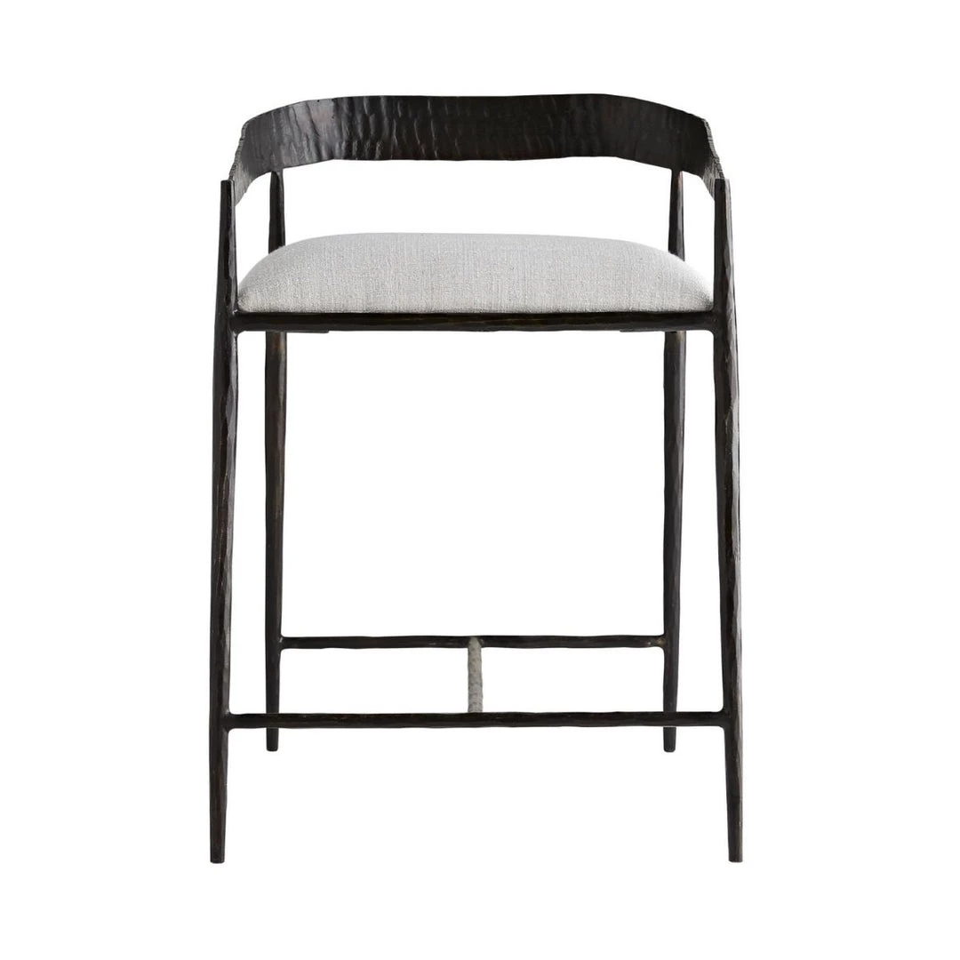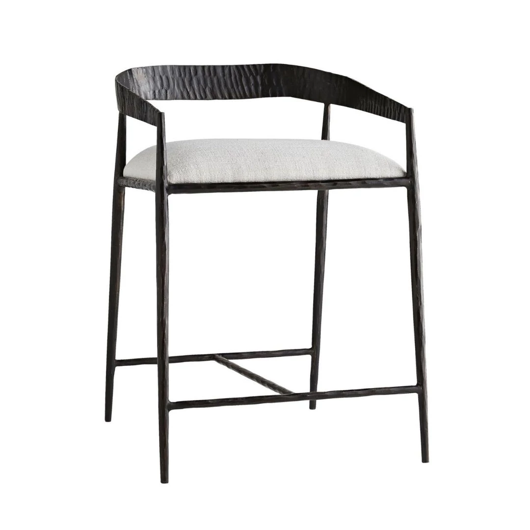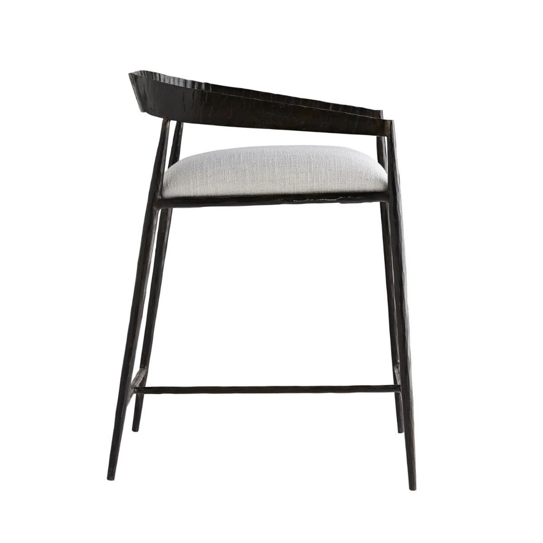 The La Grange Counter Stool has a sculptural, unique textured frame that results in a bold industrial aesthetic. With its unrefined curved silhouette, natural iron structure, and sterling linen seat, this stool is perfect for any counter space.Â