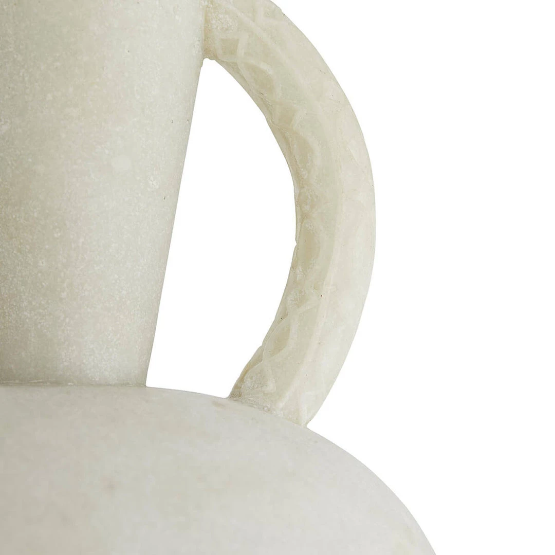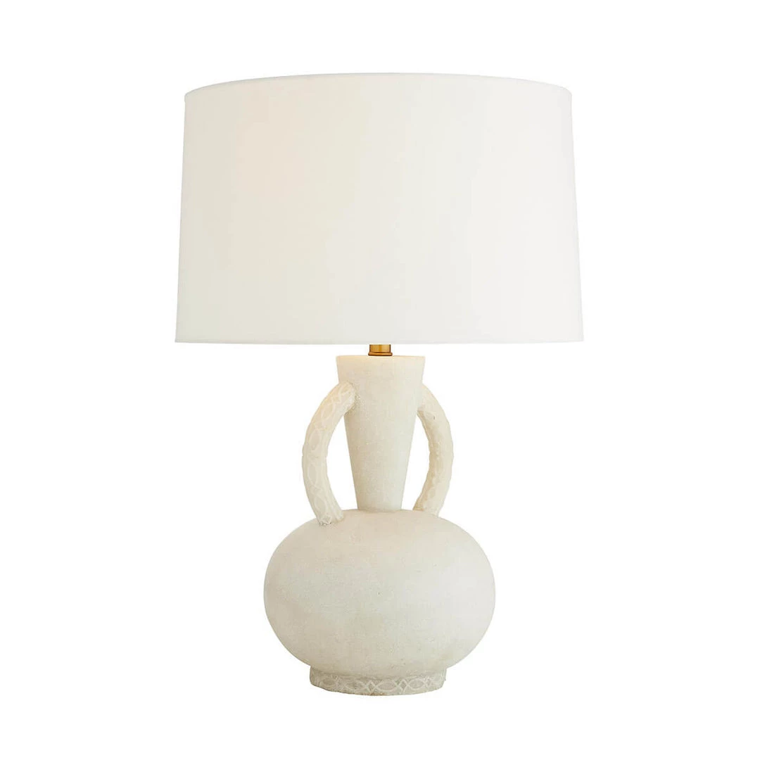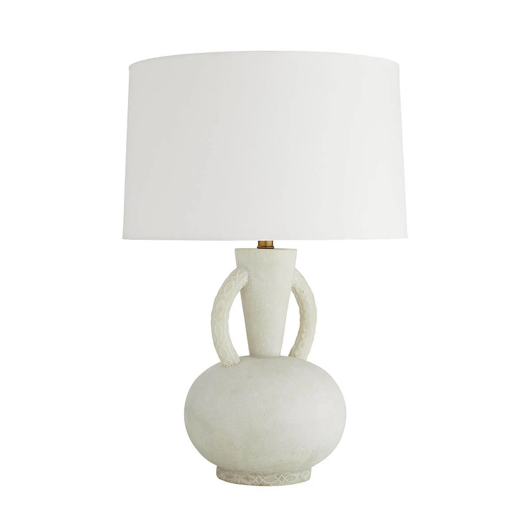 With a reference to Moorish design, the workmanship of the Laurier Table Lamp is unparalleled and understated. The vase-shaped faux marble base is shaped around antique brass steel base. Added texture and depth has been created with the embossed handles of the lamp base. When lit up, the complexity of the details is highlighted. Topped with an off-white linen drum shade with cotton lining.