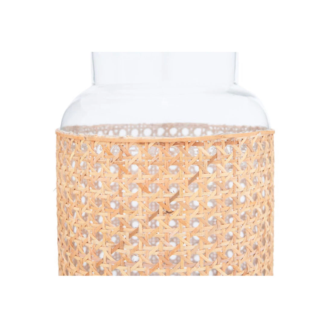 The Minia Vase is a clear glass cyclinder-shaped vase. This decorative vase is wrapped in cane for added texture and will add interest to your any table or console; fill with your favorite fresh flowers or long branches for a beautiful and timeless statement.Â