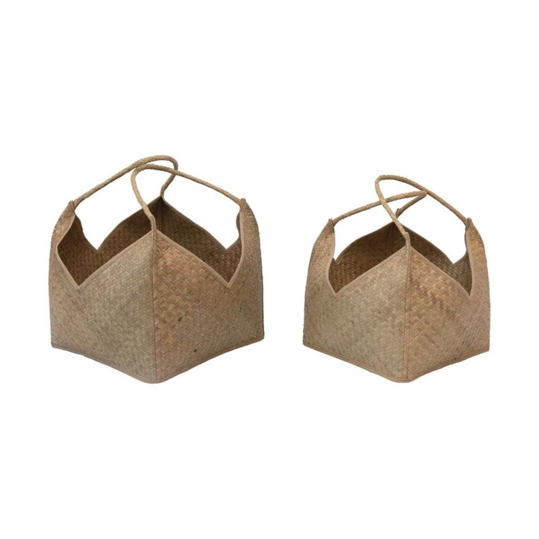 The Tivoli Gardens Baskets come in a set of two, handwoven in seagrass with handles for convenience. These two organic shaped square based baskets are perfect for storing throws or for carrying products.