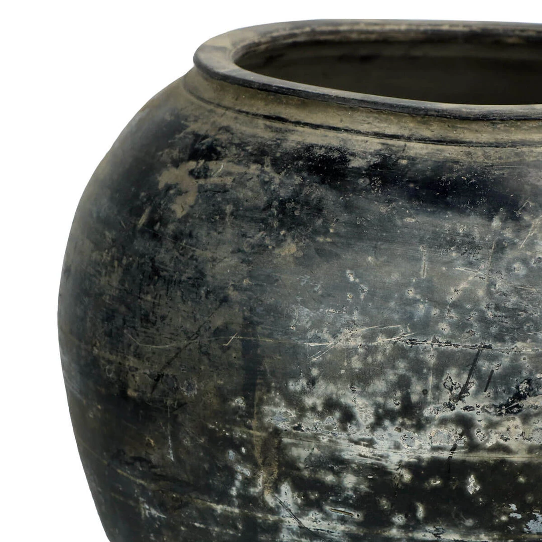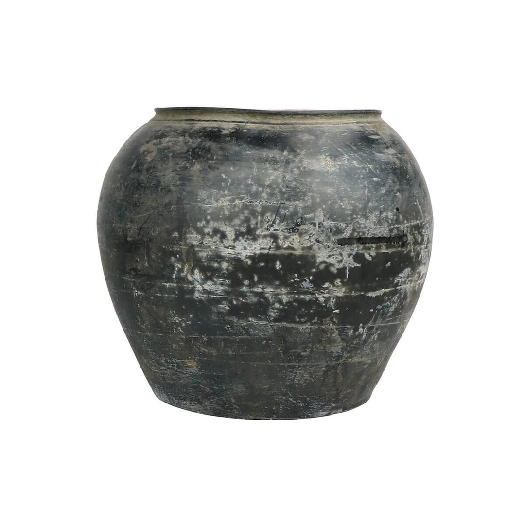 The Madera Pot has been hand-crafted from clay. The vintage piece was found in China and has a rich heritage, once used to ferment rice wine. The beautiful clay pot makes a great planter or decorative piece. Use vase to display fresh flowers by placing a glass of water at the base of the jar with the flower arrangement within.