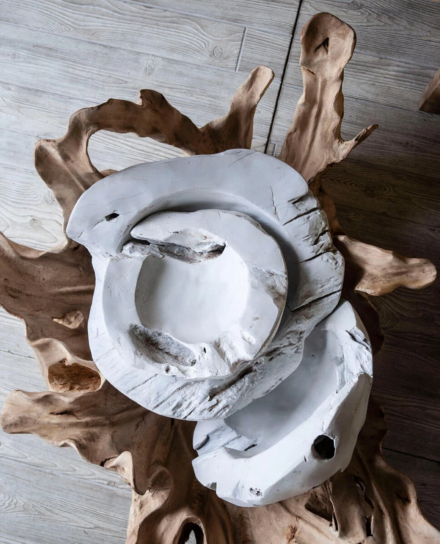 The White Teak Root Bowl has a natural elegance that blends with most décors. The organic shape is enchanting yet unassuming and it can stand alone as a stylish piece or be used for its functionality.