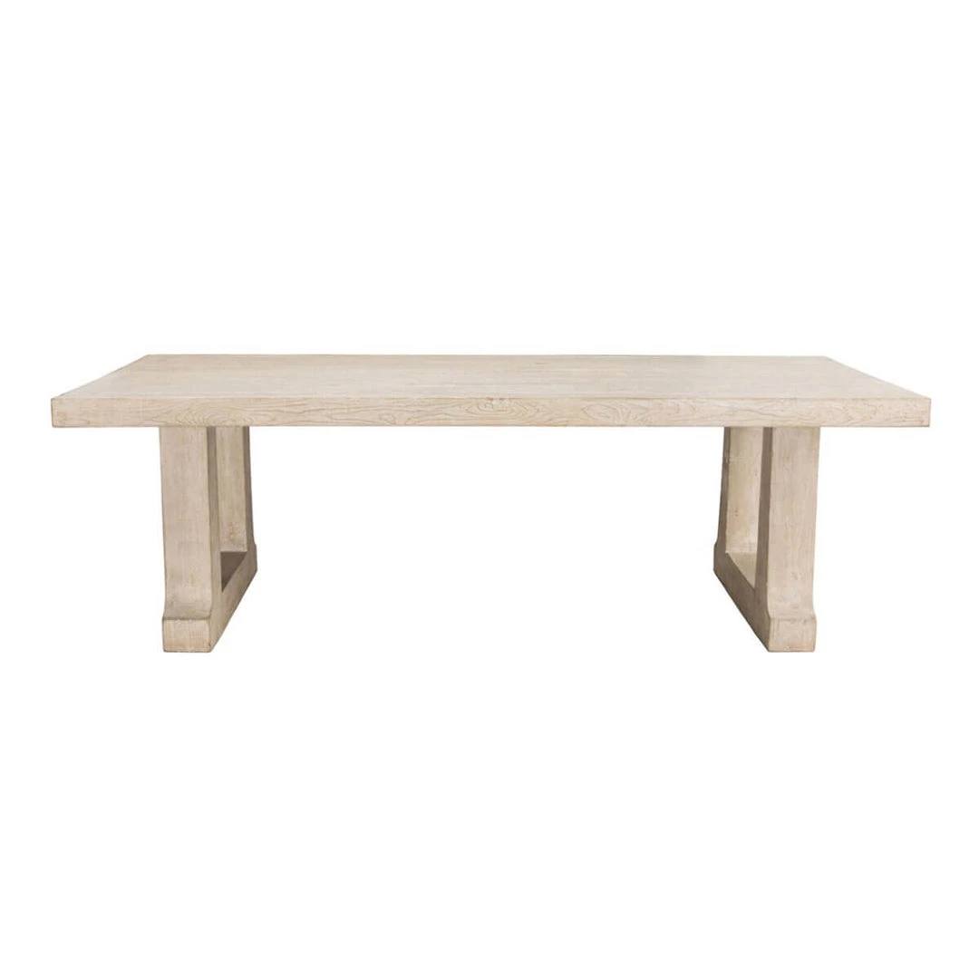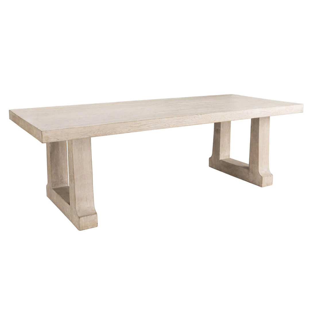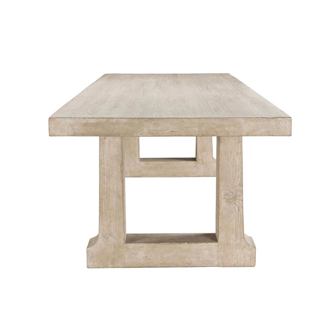 The Bremen Dining Table’s understated style brings organic beauty to any dining room. The hand-finished pine has been treated in a whitewash that accentuates the wood grain and natural variations. Supported by thick-cut trestle legs the Bremen is an unequivocal statement piece.