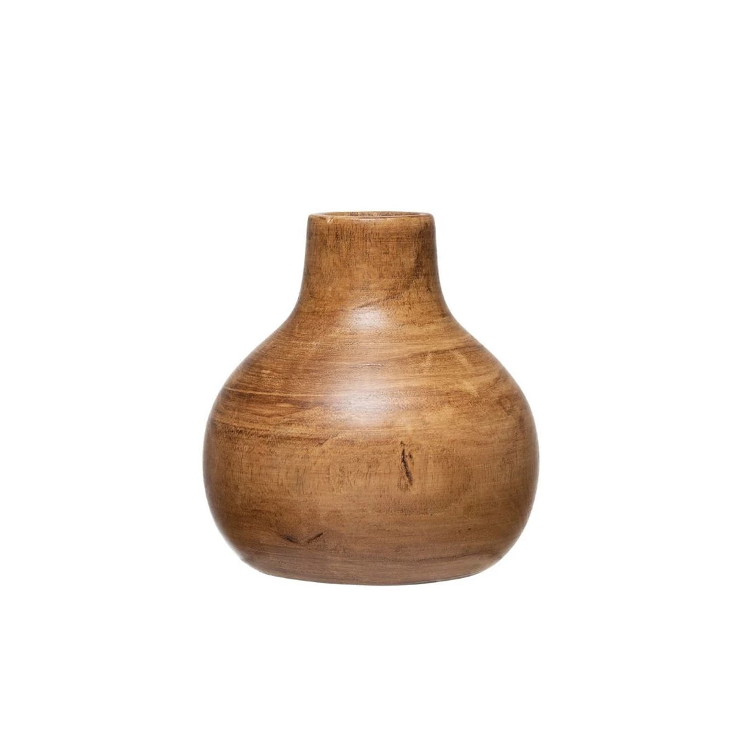 The Norrebro Short Wood Vase has an organic, rounded silhouette with a stained wooden finish. This beautiful wooden decorative vase can be used as an accent in your home with floral arrangements.