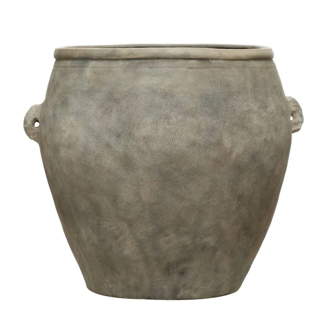 The Fulton Market Pot has been hand-crafted from clay, making each piece unique. With its natural distressed grey finish, and organic silhouette, it is a great option for displaying plants both real and artificial. There are no drain holes in this piece.Â