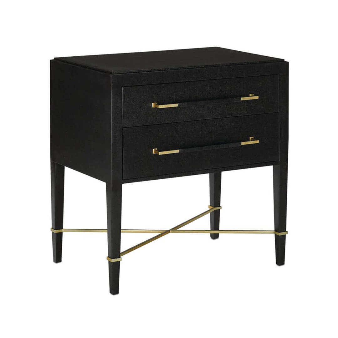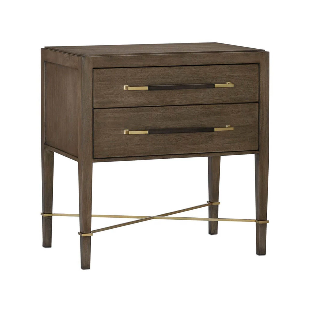 The Almería Nightstand is a dark wood beauty with a touch of metallic. This nightstand has so much style you will be dreaming about once you doze off. The dreamy design details include solid mahogany dovetail drawer boxes, soft-close drawer glides, two removable velvet drawer liners and adjustable glides.