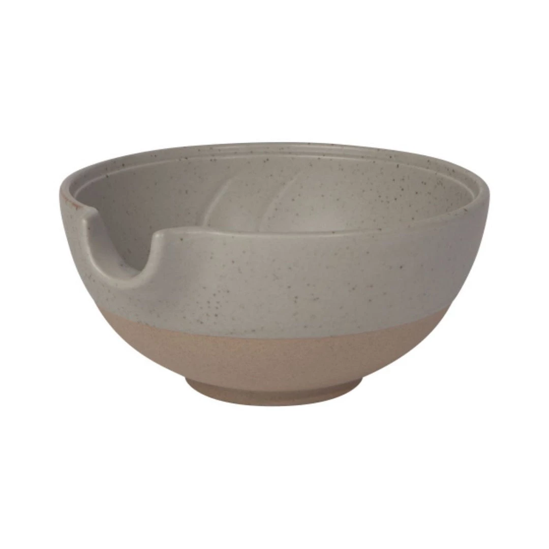 The Berea Pouring Bowl in the size medium is hand painted with organic shapes and earthy tones, with a lip used for easy pouring. Constructed of stoneware this bowl is perfect for mixing pancake batter or washing berries, and to be mixed and matched with other kitchenware.Â