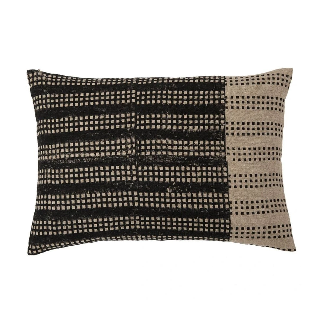 This Creston Pillow incorporates hand block-printing in a contrasting duo tone design. This minimal square pattern can beautifully tie into any living space.