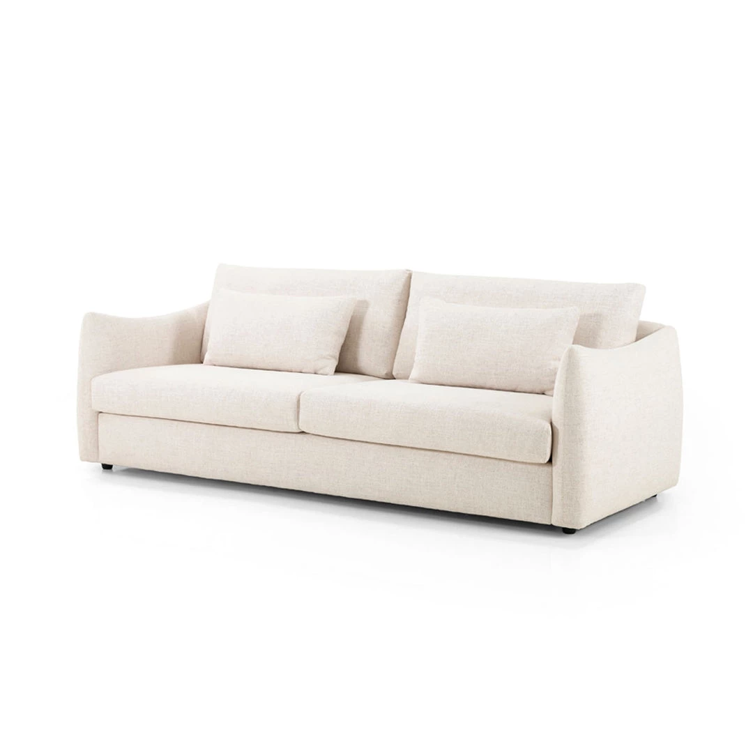 The neutral-toned colouring of the Castries Sofa is blended with scalloped sides and double-stacked back cushions for the ultimate comfort in your everyday lounging.