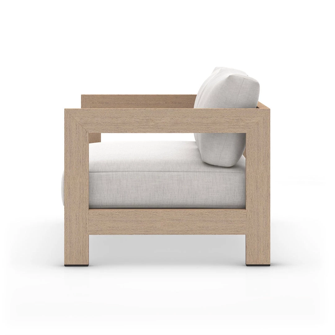 Modern materials ready a sophisticated silhouette for the outdoors. FSC-certified teak forms a clean, wide frame for UV-resistant and water-repellent fabric. Cover or store inside during inclement weather and when not in use.