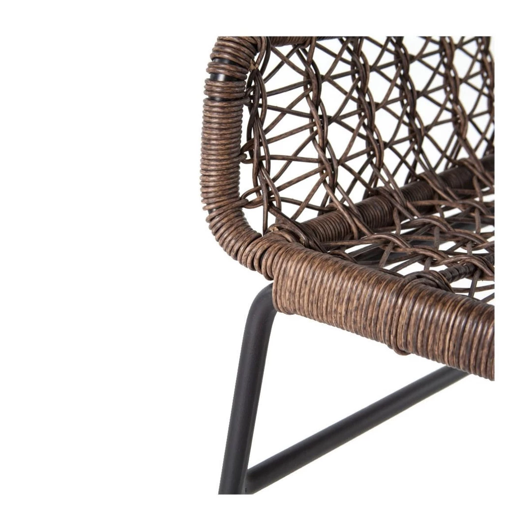 Clean, contemporary shaping and an updated weave transform all-weather wicker into something modern. This take on the club chair is supported by a contrasting black iron base. Safe for outdoor spaces— cover or store indoors during inclement weather and when not in use.
