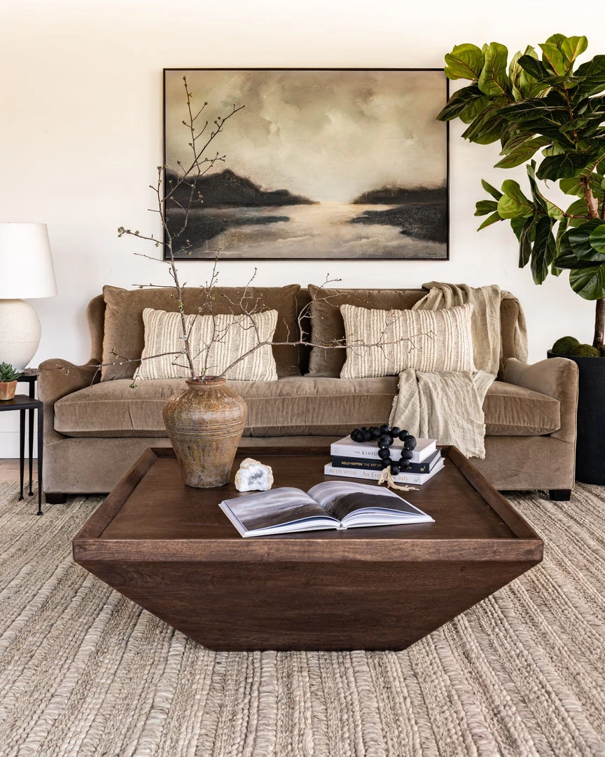 The Dineen Coffee Table emulates balance and grace. A broad, recessed top offers inviting angles and a solid base that grounds a room. Made of mixed reclaimed woods.