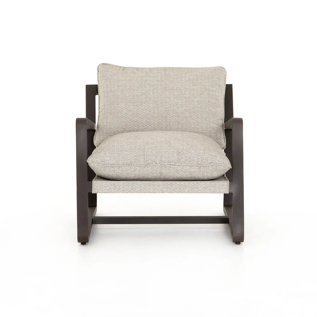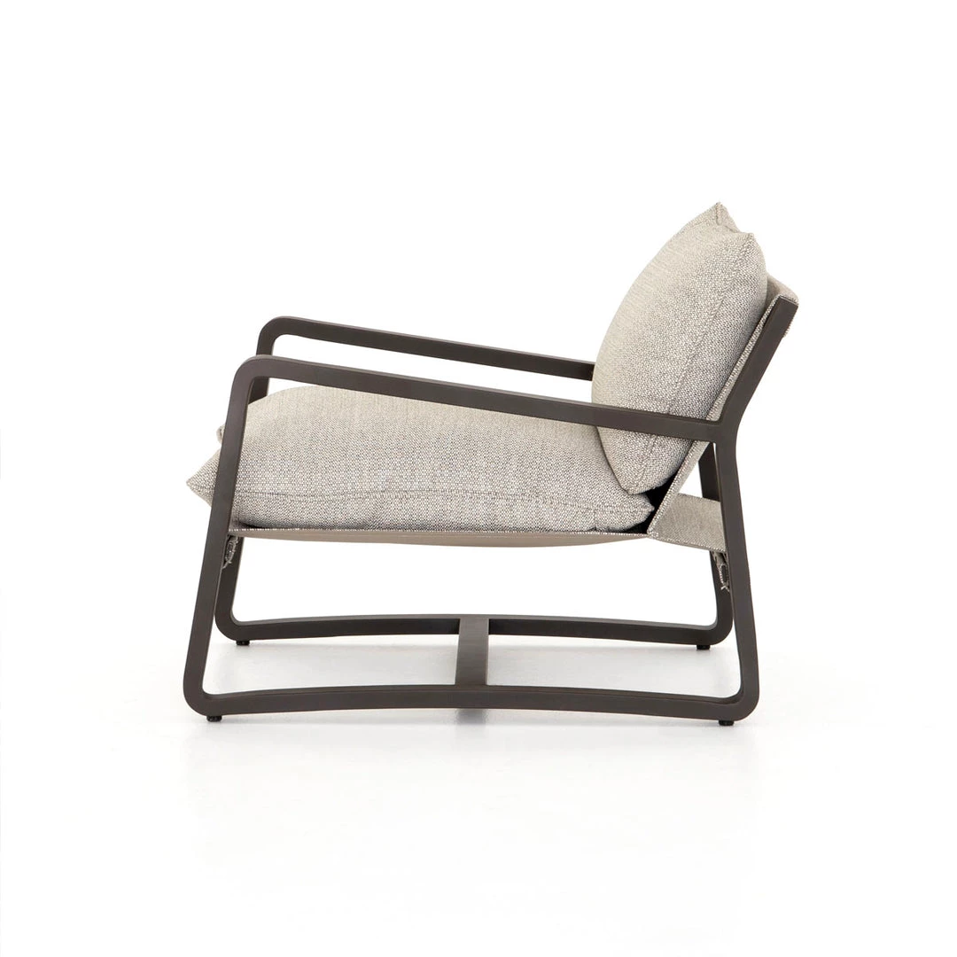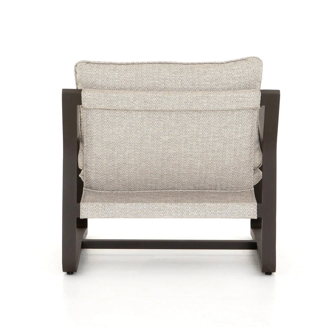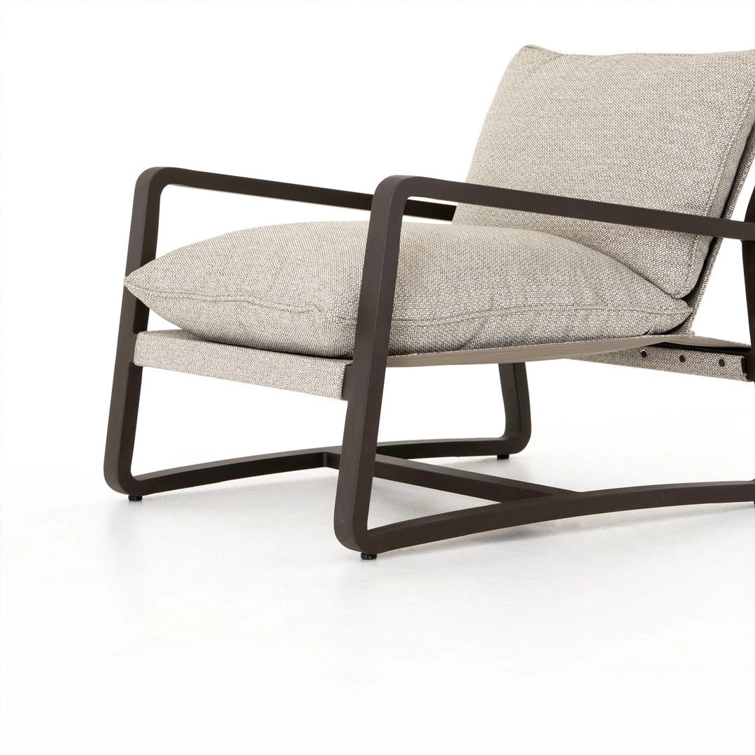 The perfect place to take in the sunrise or sunset. Bronze-finished aluminum frames deep, low seating covered in an invitingly neutral ash. Cover or store indoors during inclement weather and when not in use.