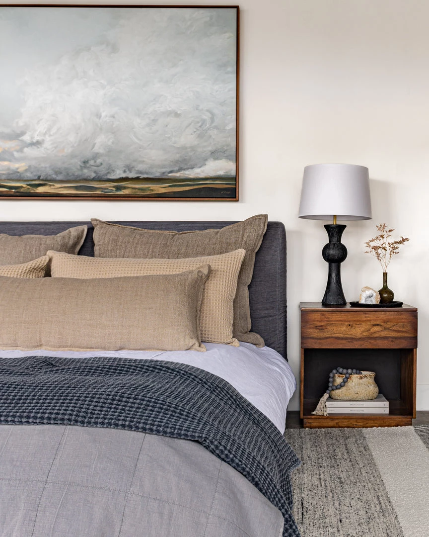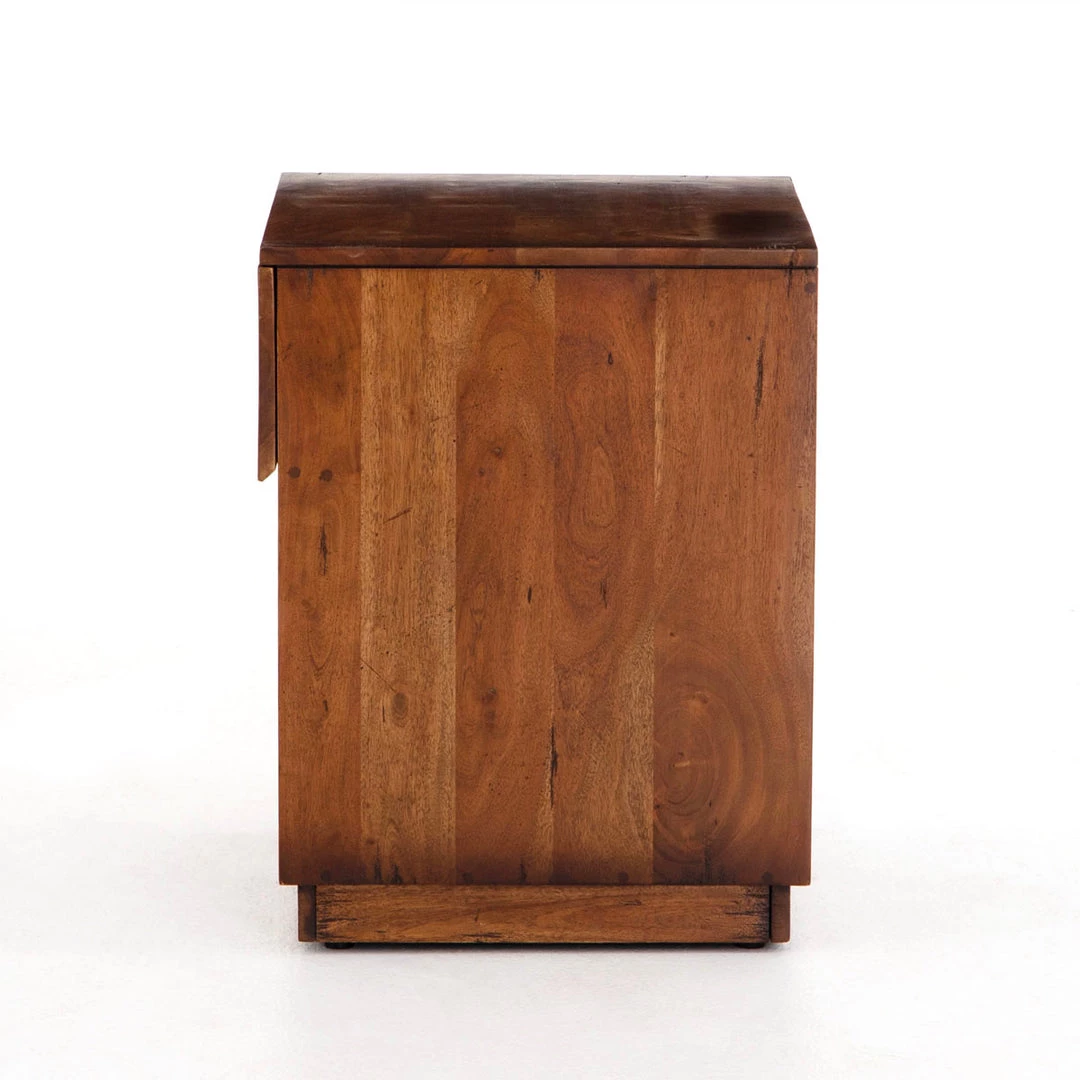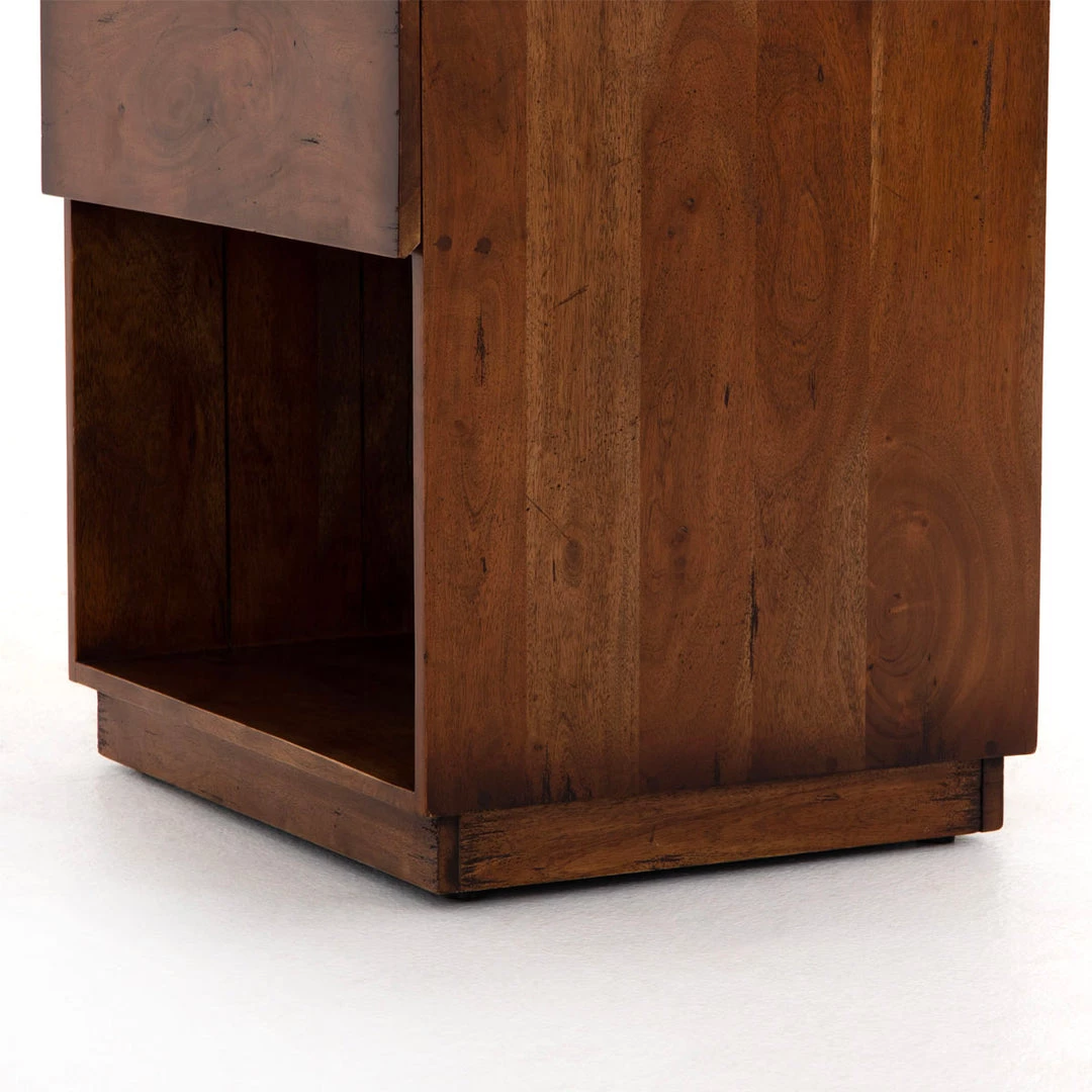Organic in nature with mid-century undertones. Solid acacia forms a streamlined nightstand, with a single drawer plus lower shelving for handy bedside storage.