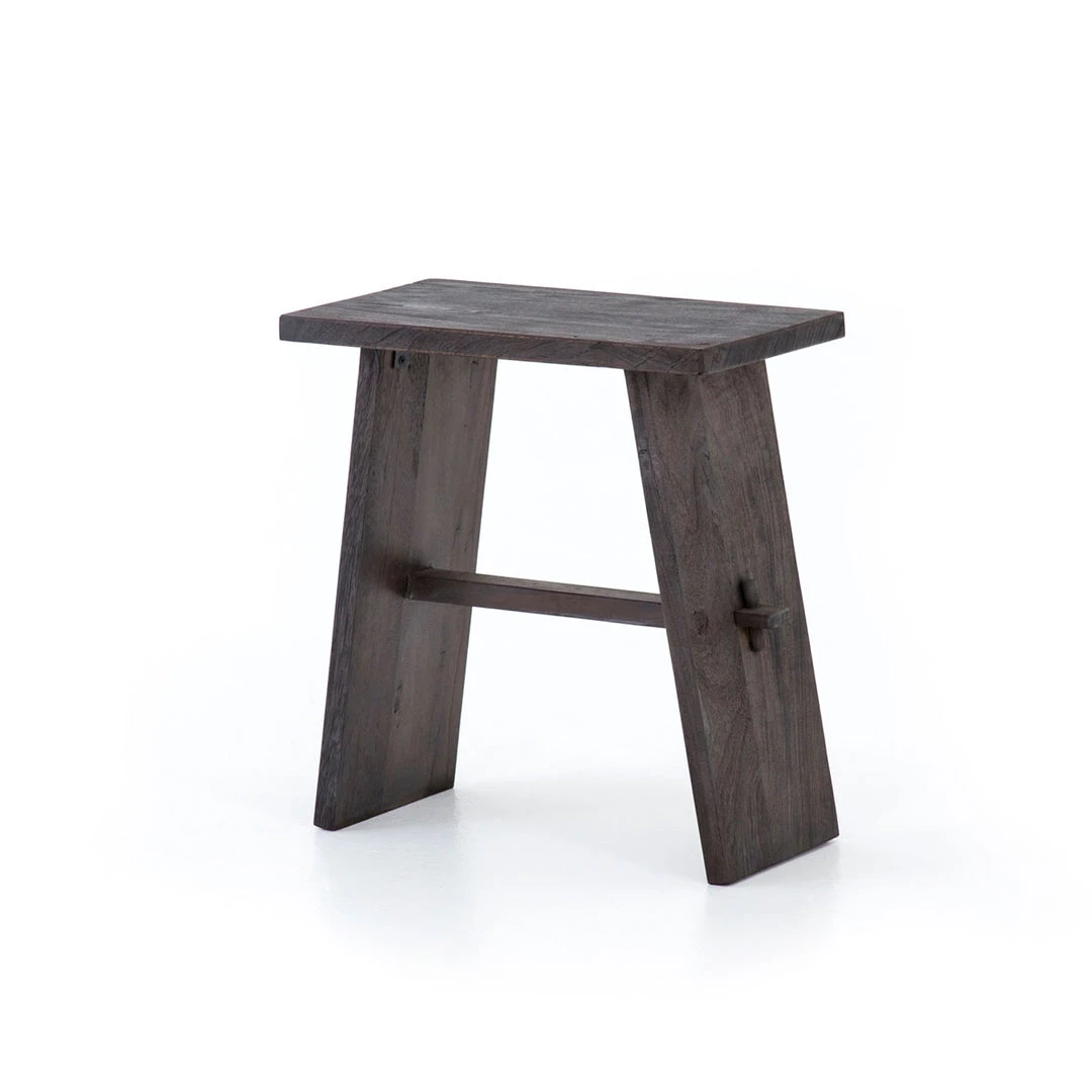 The Kofa Stool is simple in design but classic and versatile.The mortise and tenon joinery made from reclaimed wood and finished in a deep totem tone, this Indian inspired silhouette adds a global feel to your room.