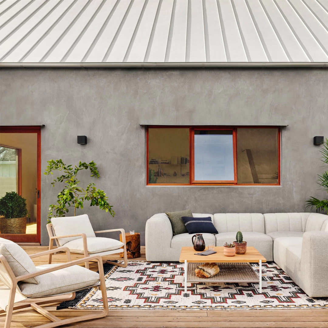 The perfect place to take in the sunrise or sunset. Bronze-finished aluminum frames deep, low seating covered in an invitingly neutral ash. Cover or store indoors during inclement weather and when not in use.