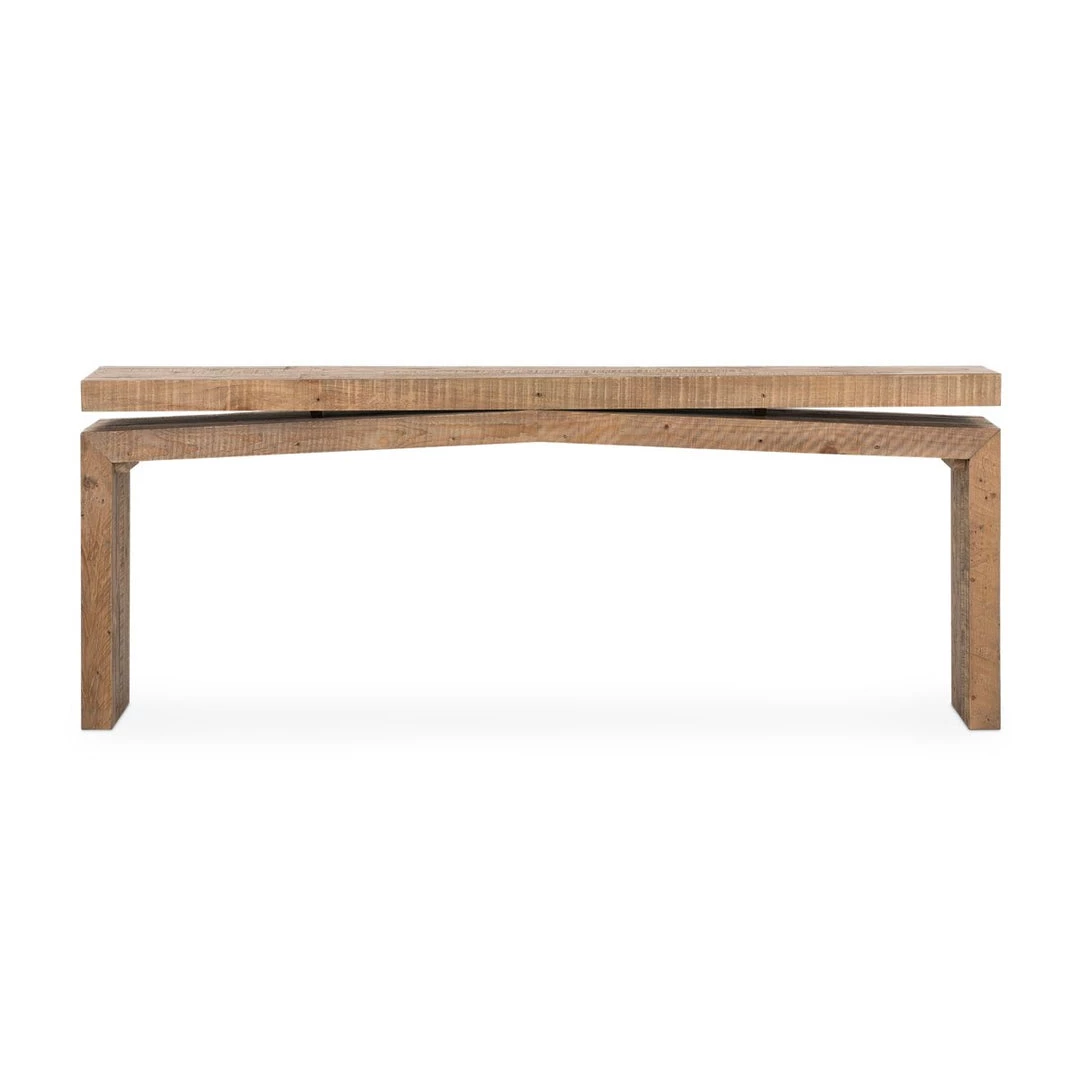 The Mendocino Console Table captures the rustic charm of natural wood in a contemporary design. An earthy, grounded console for your dining room, living room, or entrance design.