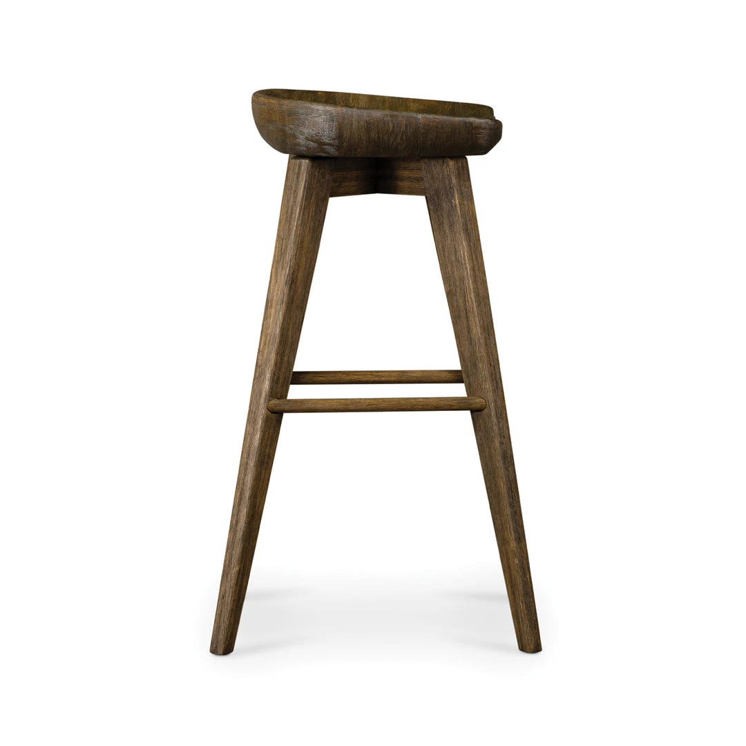 The Olmeto Swivel Stool is simple, elegant and classic without sacrificing comfort. The solid wood design has a distinct style with an elegantly curved swivel seat and long straight legs. The four triangular legs are reinforced with cross bracing that also acts as a footrest.