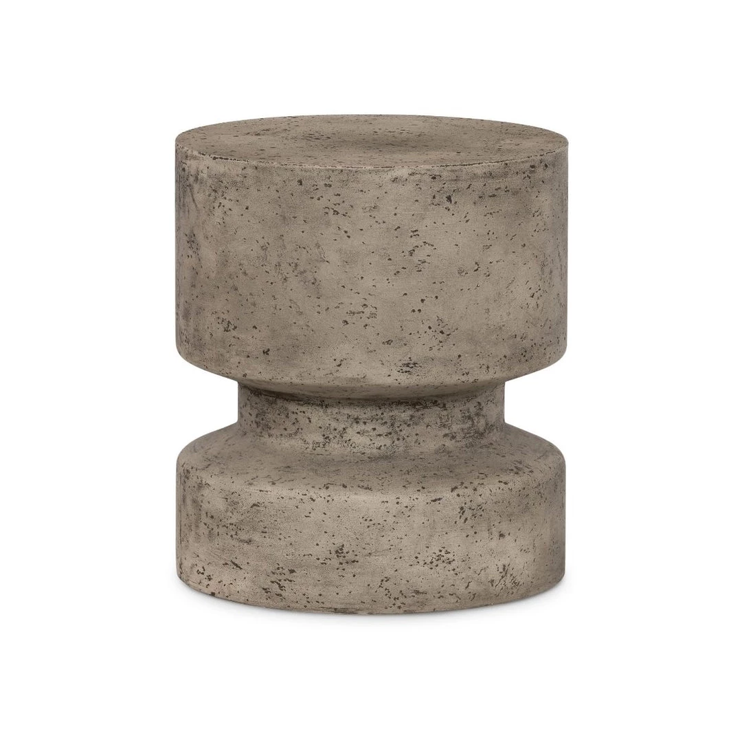 The Osterbro Outdoor End Table is constructed of an organic concrete silhouette with a distressed graphite finish that a modern, yet natural statement for the indoors or outdoors. This table will compliment and make a great addition to the rest of your patio furniture.