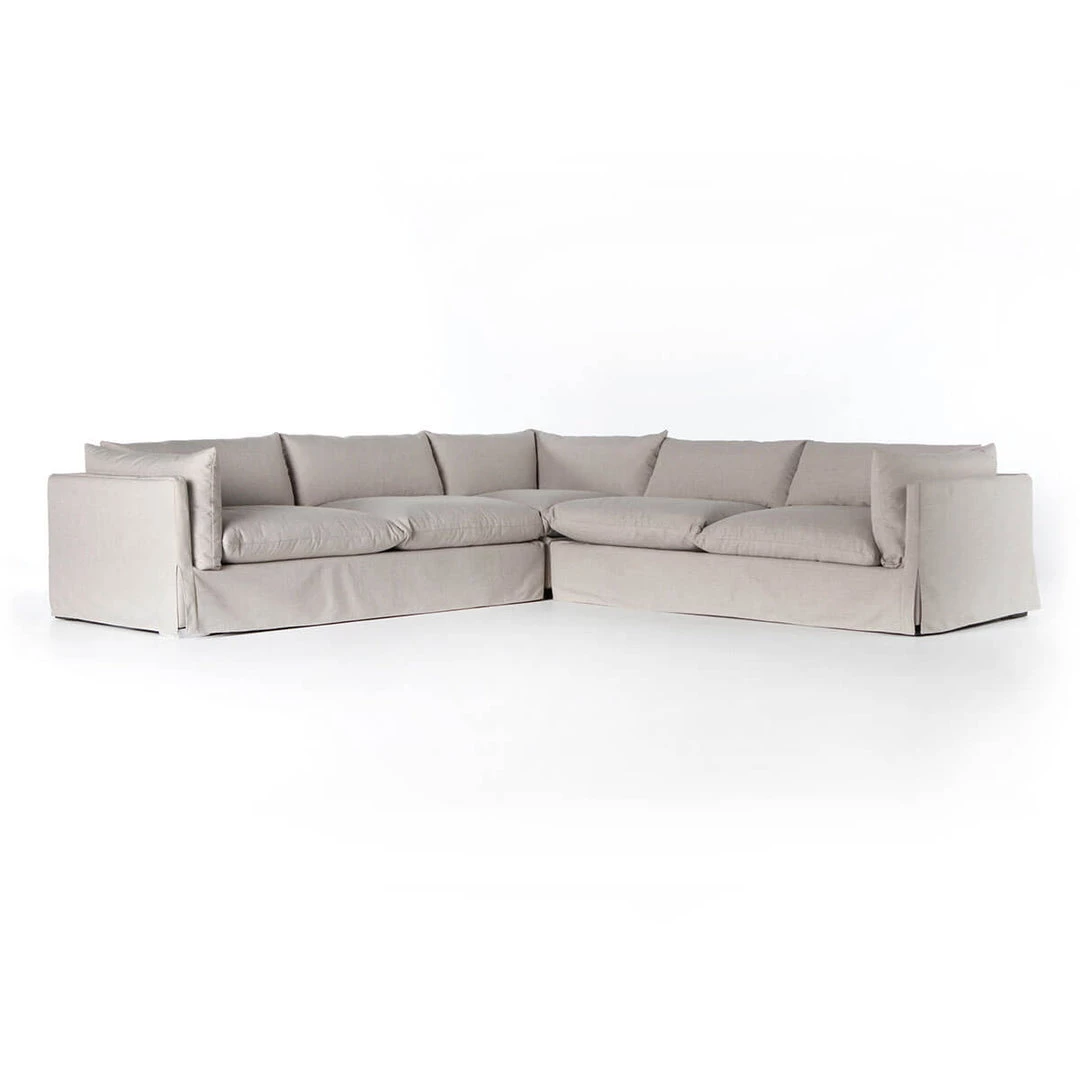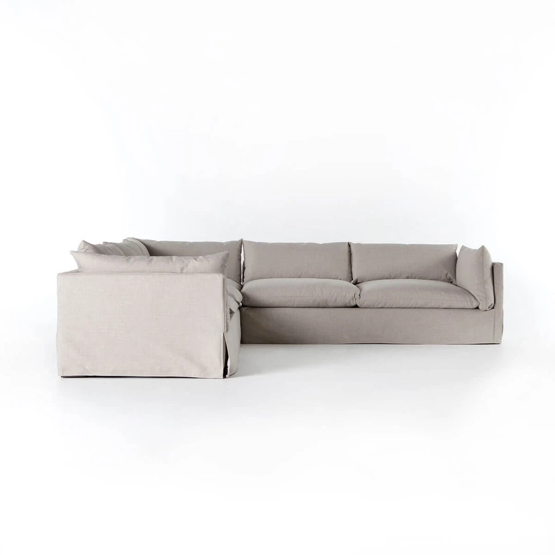 The Strathcona Sectional, slipcovered and made for modern living. Lounge around on the neutral, moon-toned fabric cover with shelter arms and pillow-inspired cushions.Â