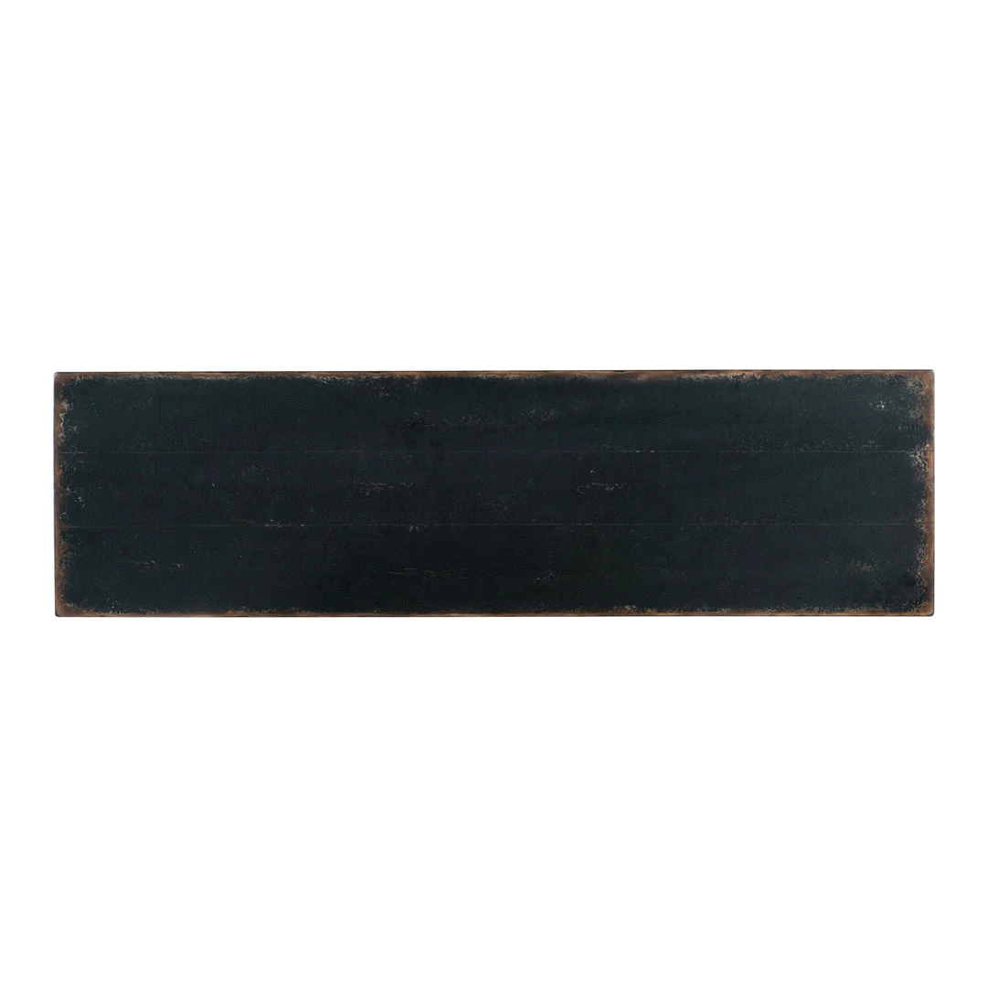 - Finish: Black. Distressing includes worm holes, rasping, muti-layered rub through and emulsion.