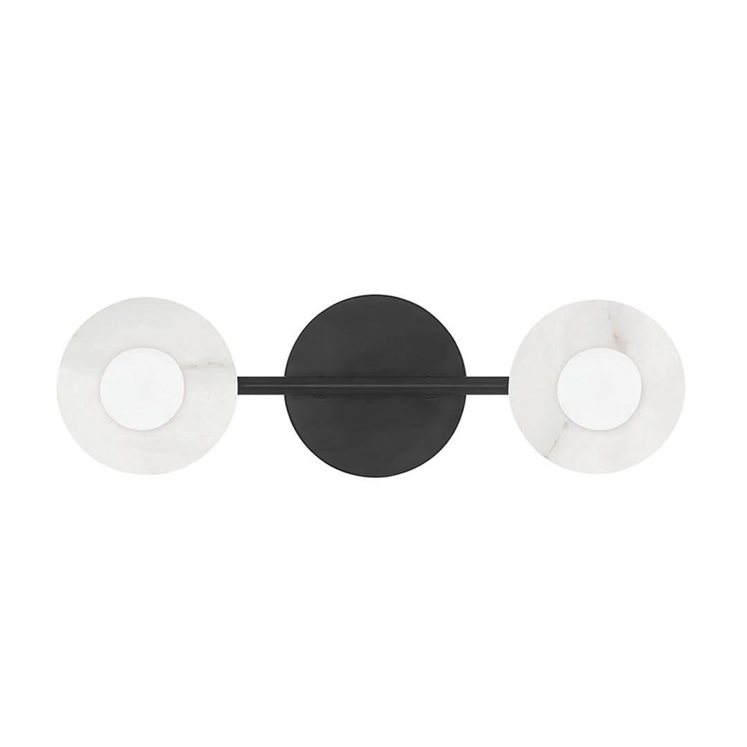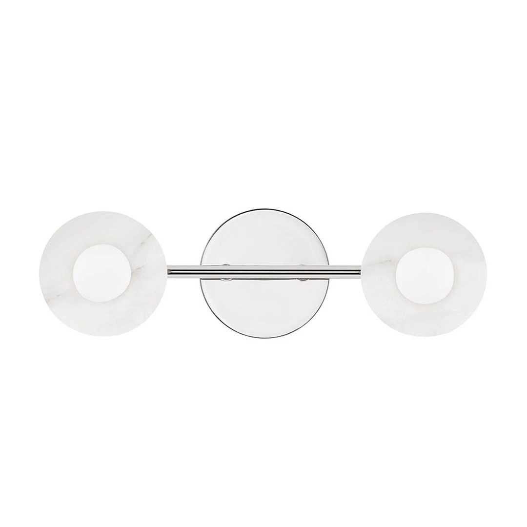 A bath bar that introduces serious elegance into a simple design by setting alabaster discs as foils against each diffuser, the Elmont Sconce’s accents of stone infuse drama into the bath.