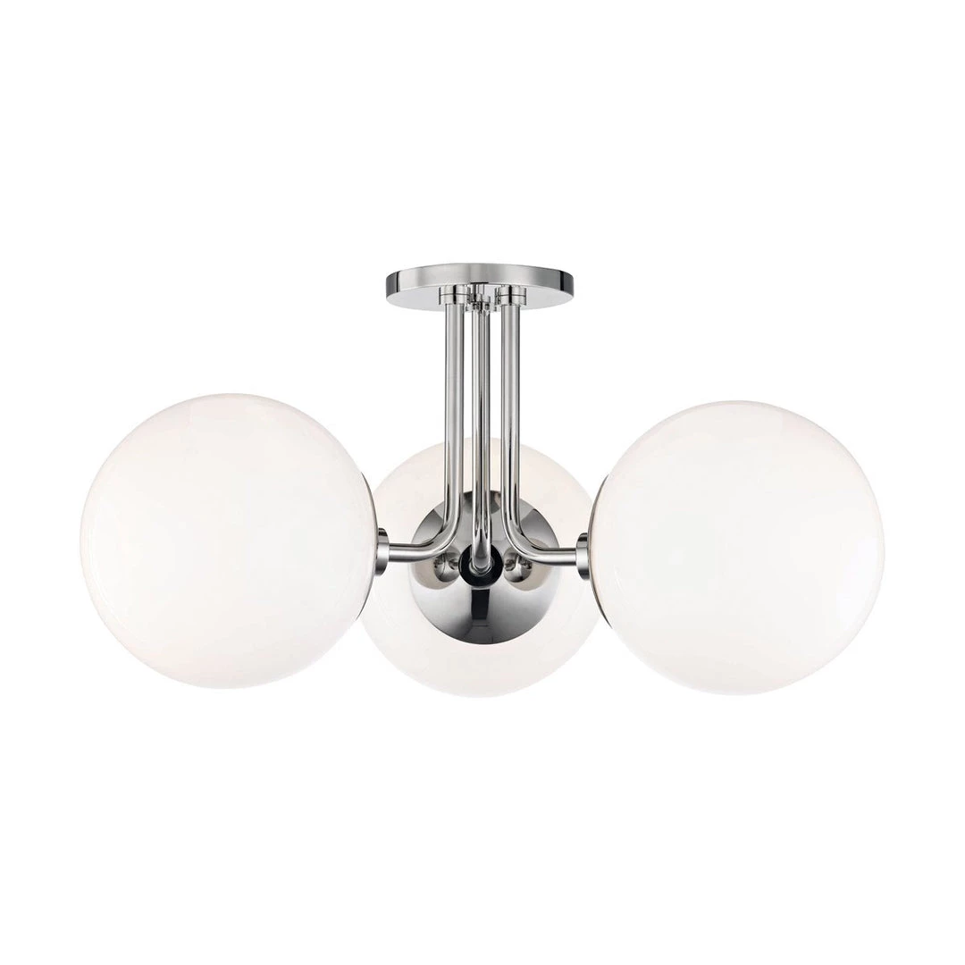 The Stella Semi-Flush Mount ceiling light comes in a selection of finishes to compliment the three glass globes.