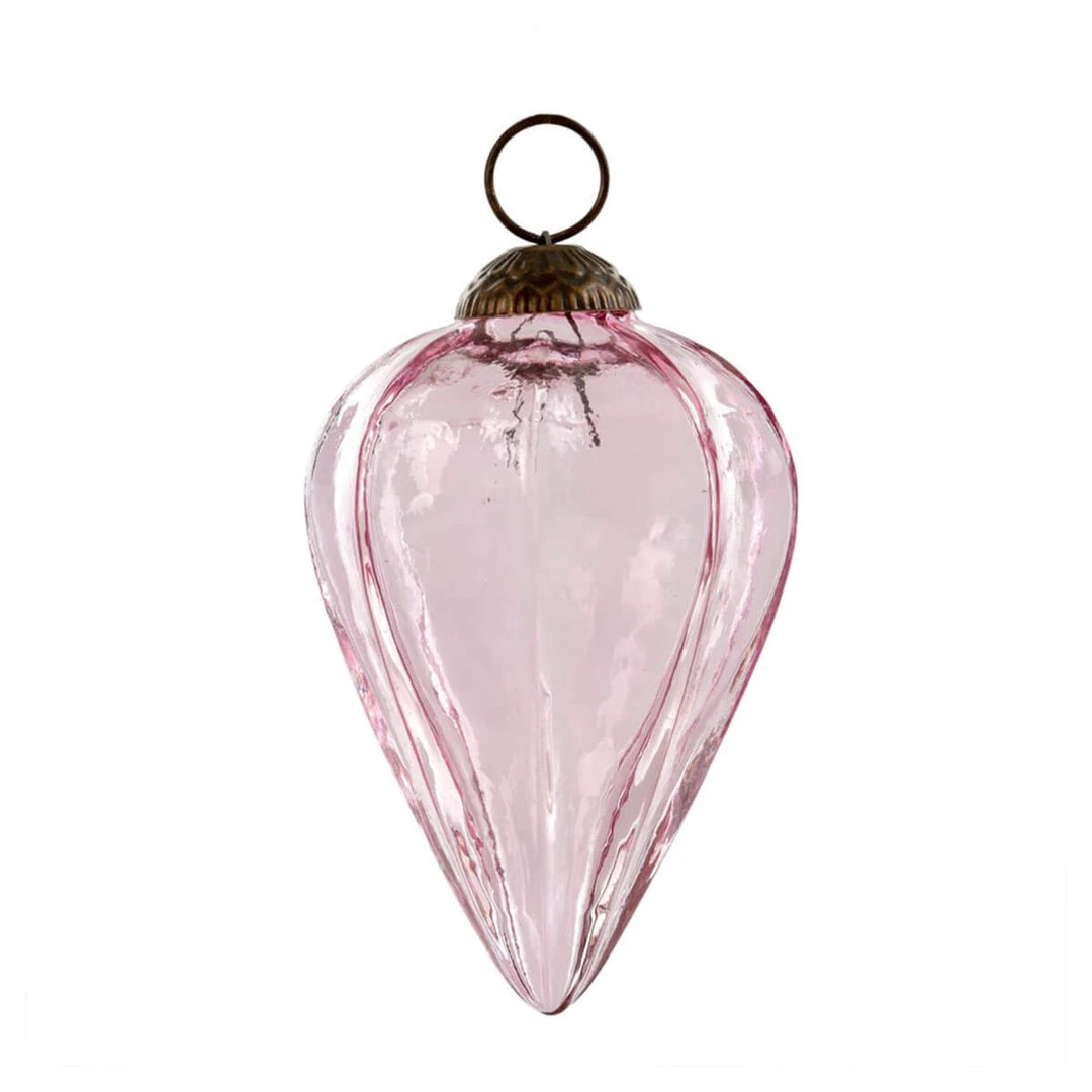 Bring a bold elegance to a festive display with the Coastal Cone Pink Ornament. The stunning cone-shaped glass ornament can be hung alone or as a grouping. Available in a variety of sizes for your curated tree, mantle or garland.