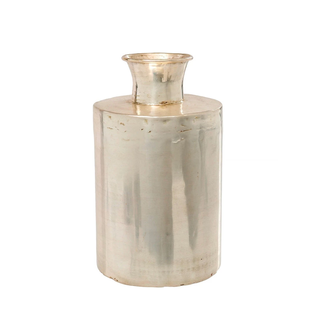 The Jesup Vases make beautiful vessels for the display of fresh florals. The cylindrical shaped brass vase with a fluted opening is finished in a pearlescent silver for a decorative touch.