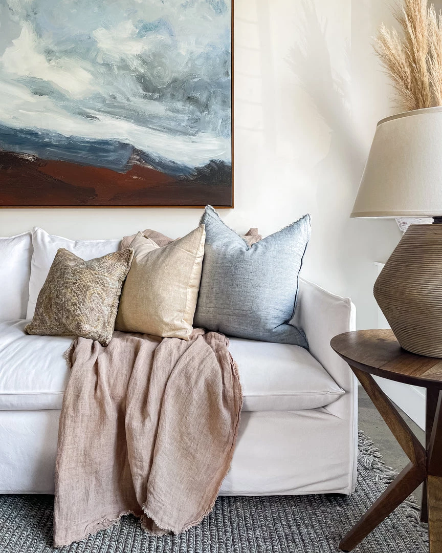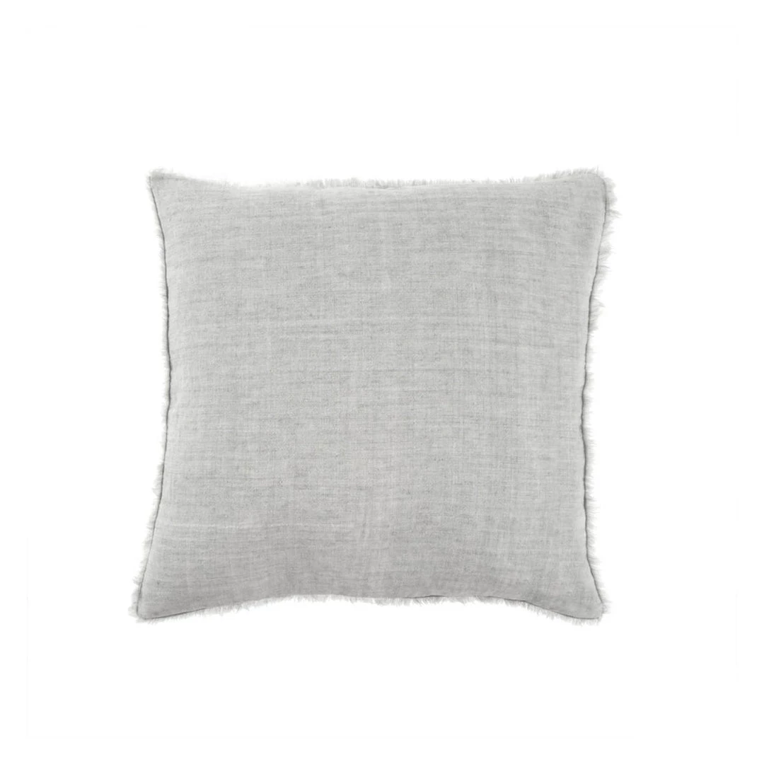 A inspiring textural addition, the Caracus Pillow offers a sophisticated accent to your interior space. Crafted of soft linen, the Caracus boasts a solid pale grey with ocean blue tones. Organic fringe details in a tonal hue offer subtle texture to this plush accent.