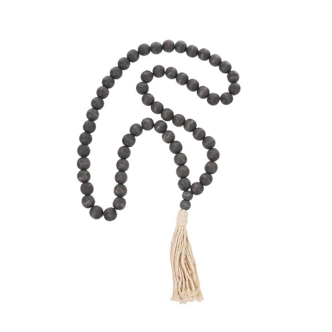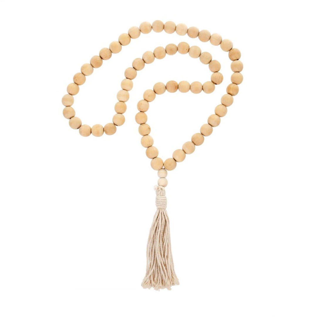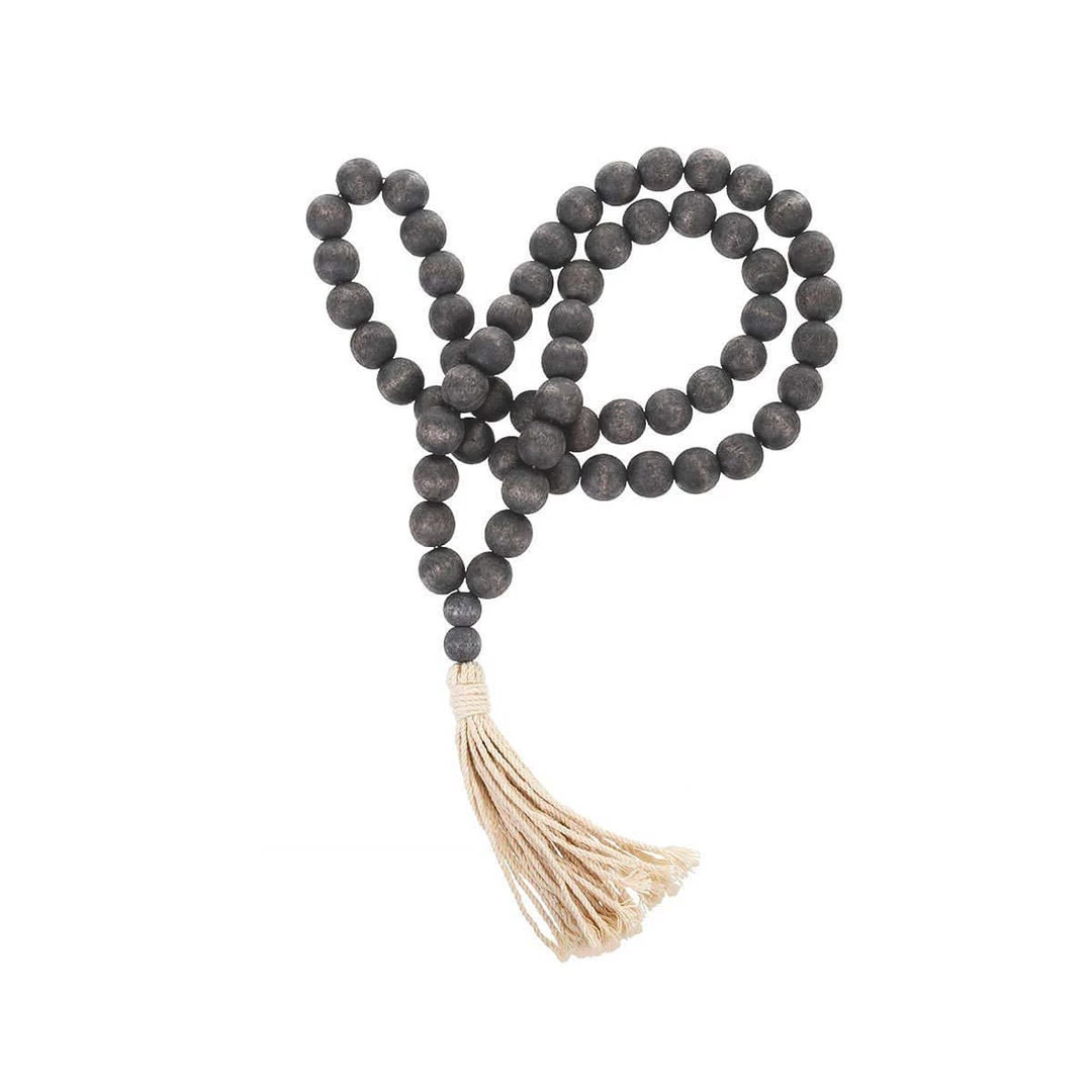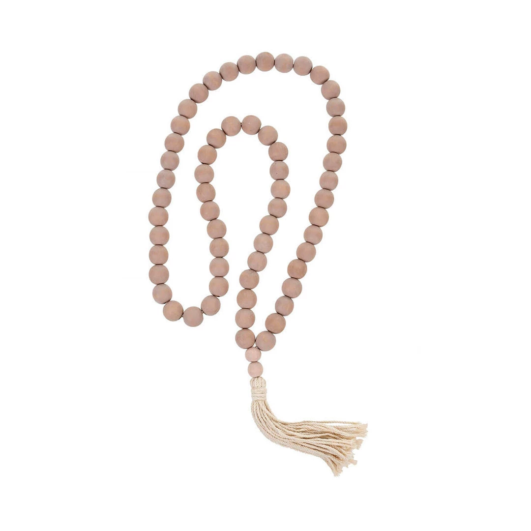 The Tassel Beads are a symbol of love, luck and meditation, these wooden bead strands are accentuated by a thick cotton tassel. Display them over a mirror, vessel, hook, or coffee table.