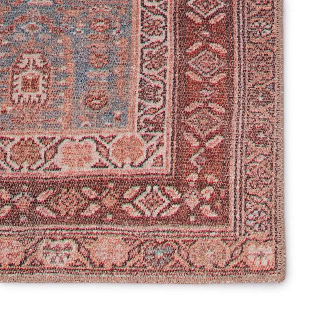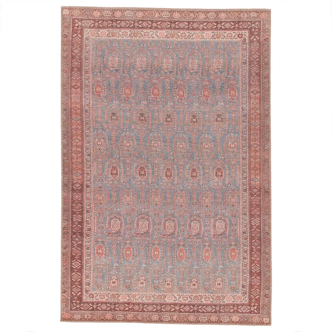 Inspired by the vintage timelessness of Persian designs, the Azulik Rug boasts faded yet moody hues of tan, brown, and pale blue. This power-loomed rug features a low pile of soft polyester.