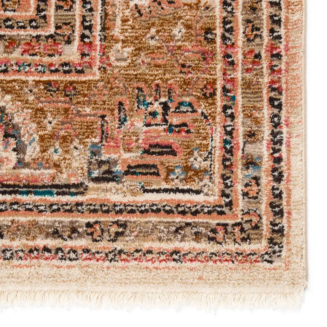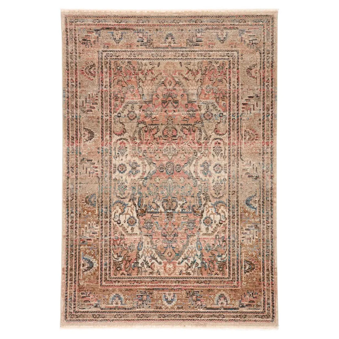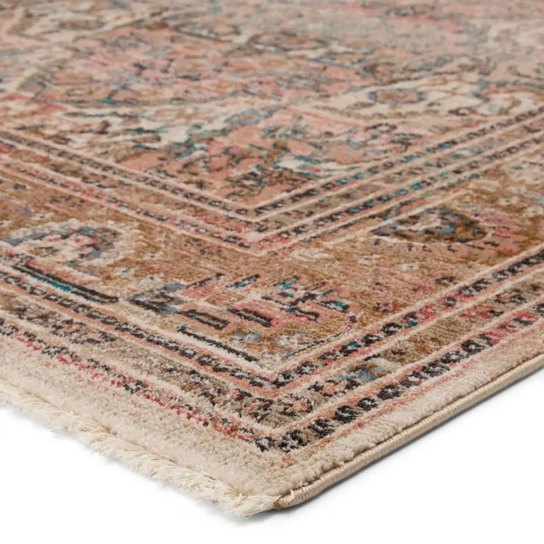 Inspired by the vintage perfection of sun-bathed Turkish designs, the Beaconsfield Rug is warm and inviting with faded yet moody hues. These rugs boast a romantically distressed center medallion in soft, neutral tones of terracotta, pink, dark blue, and tan with ivory fringe trim for added texture and antique allure. This power-loomed rug features a plush and durable blend of polyester and polypropylene, lending the ideal accent to high-traffic spaces.