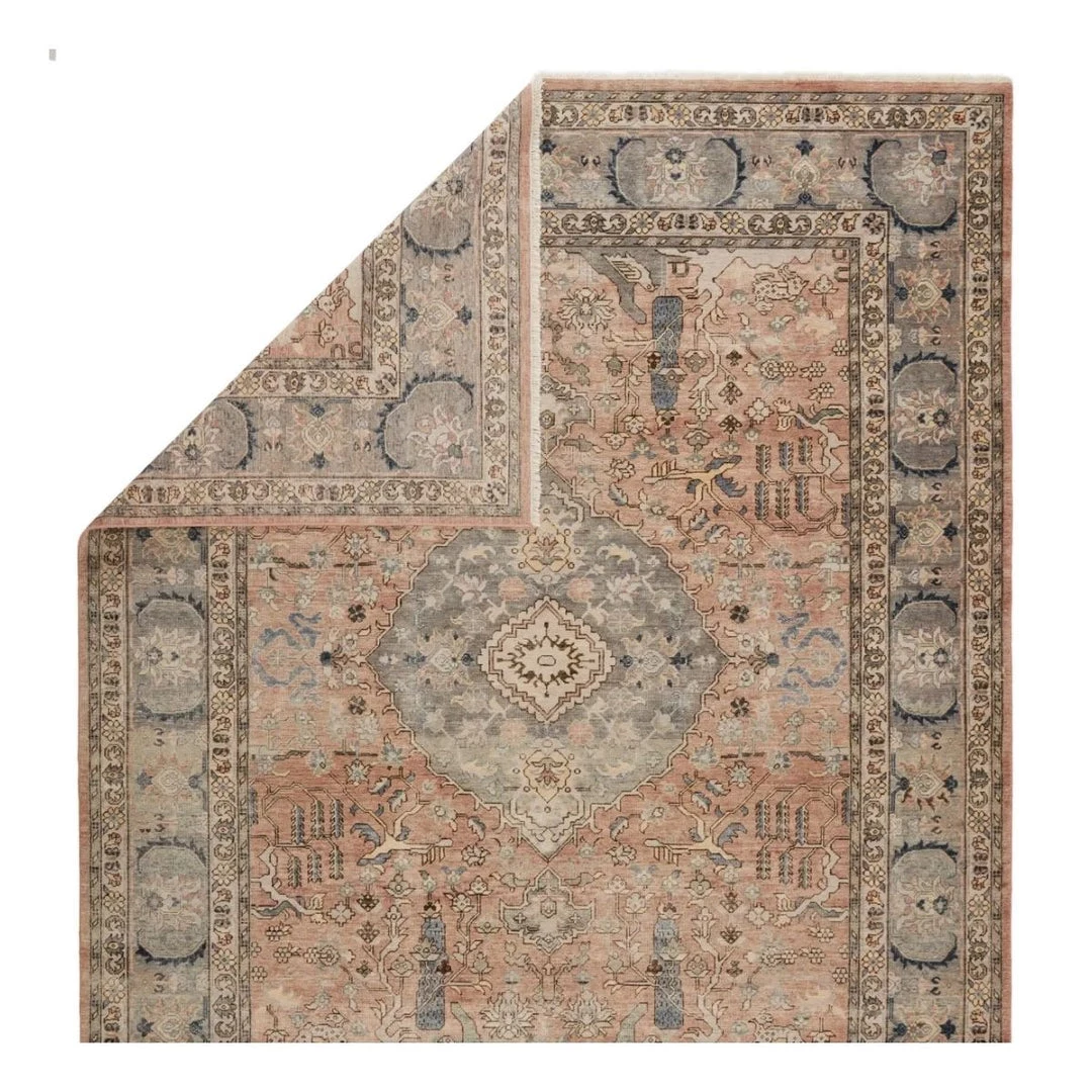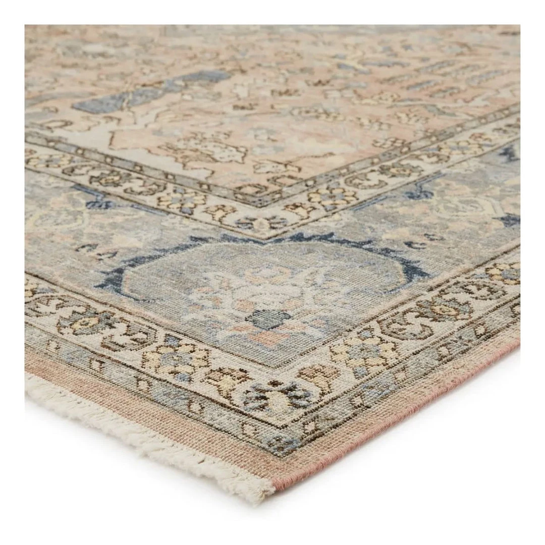 This hand knotted rug is perfect for any modern or contemporary space with its whimsical design and vintage look. With its tan, grey, and rose tones, and soft Afgan wool texture, it is a beautiful statement for your home.
