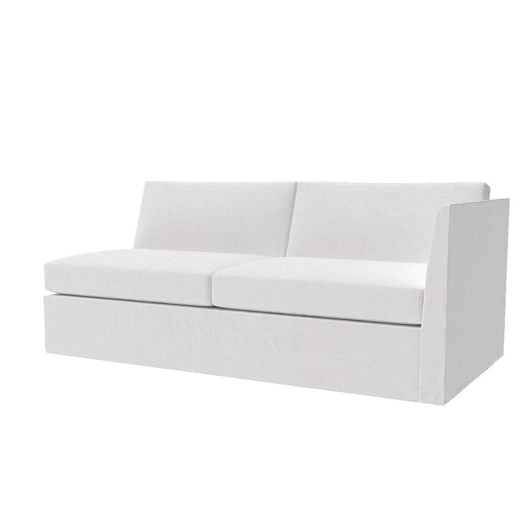 Lifestyle image showing One-Arm Sofa in Spinnaker Salt.