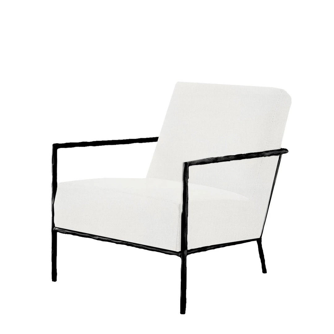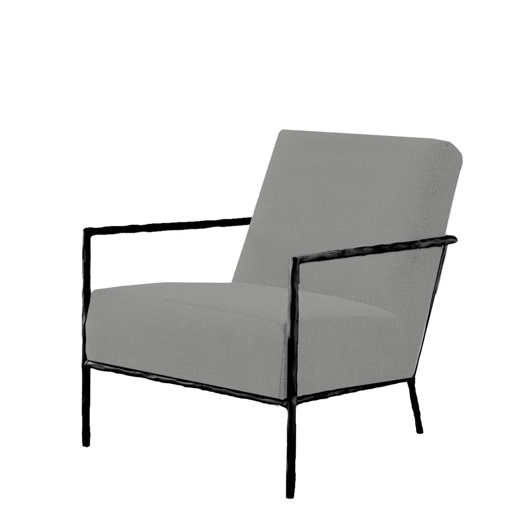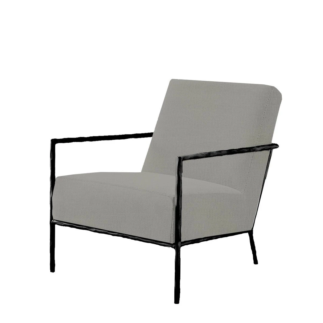 Featuring a hammered iron frame , the Russeau boasts a modern silhouette. Clean lines offer a sense of intrigue and refinement to any room. With a variety of fabrics, customize this accent chair to fit your space.