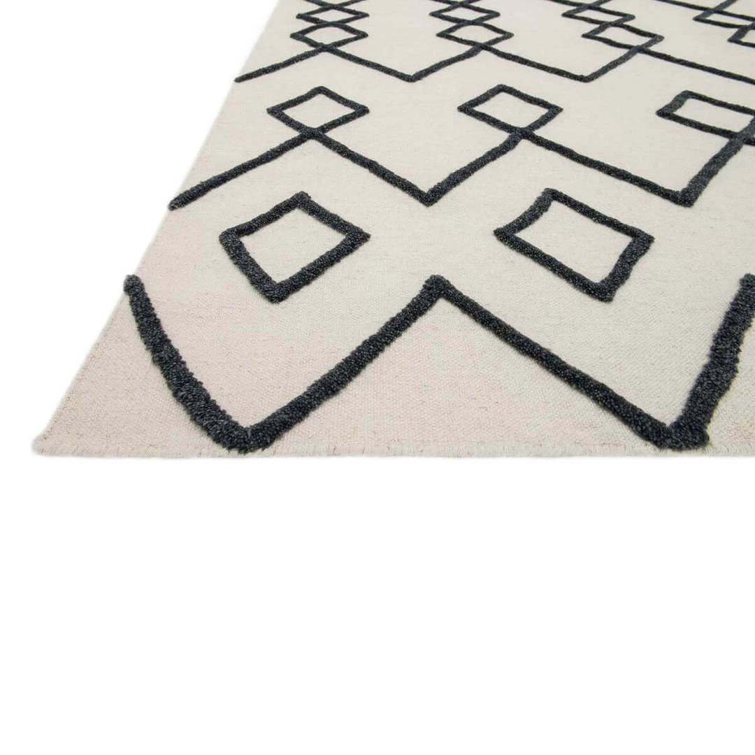 The ivory and black colours offer a gorgeous pop of pattern to any living room or bedroom while still remaining on-trend and neutral. The 100% wool rug was hand-woven in India