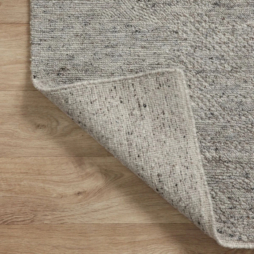 The Collins Pebble / Silver Rug has a simple, textured style interwoven in light grey and charcoal tones. The raised wool create a visual illusion of movement, with light cream tones to add depth and intrigue to your space.