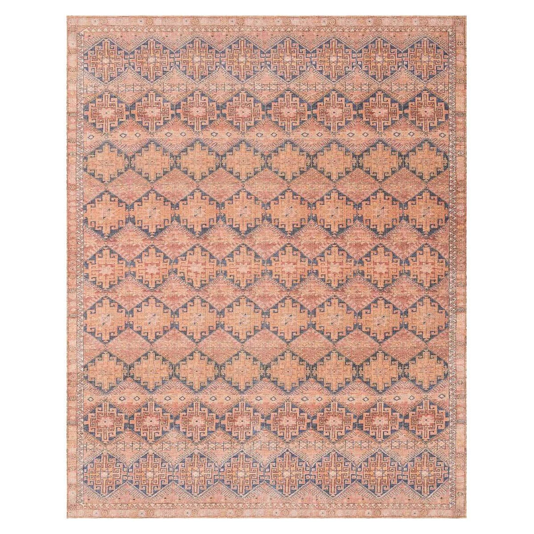 The Deven Persimmon / Indigo Rug features warm colours and timeless design. The 100% polyester power-loomed rug captures the soul of a one-of-a-kind rug through advanced printing technology.