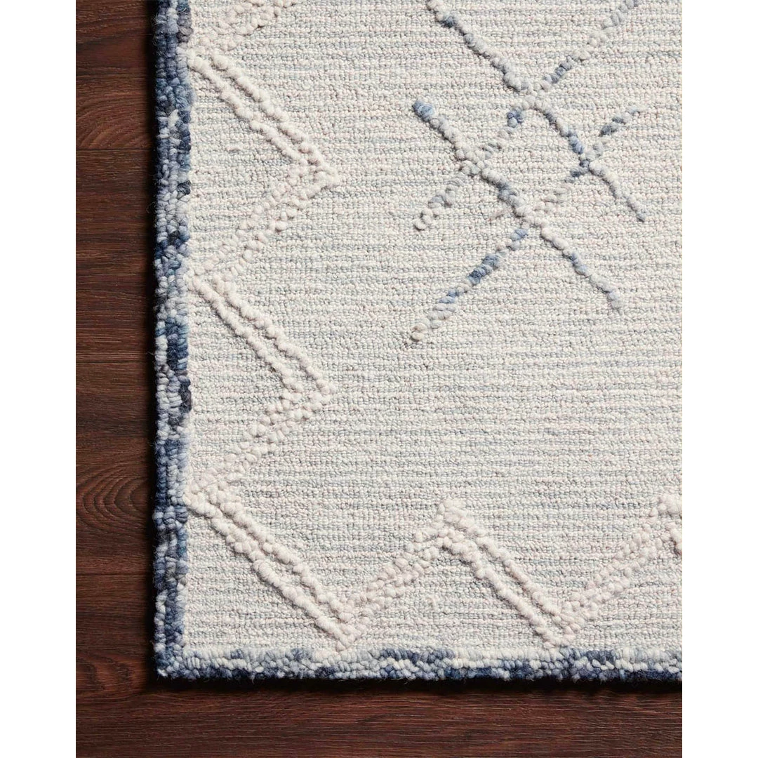 Inspired by abstract and geometric freehand art, the Leela Collection is designed by Justina Blakeney for Loloi. It is based on designs that create the illusion of visual movement through beautiful tones of warm white, and ocean blues.