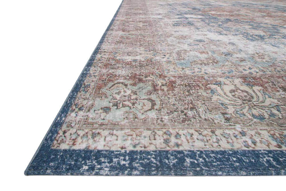 The rich colours and texture of the Lucca Denim / Terracotta Rug will decorate your room beautifully. Once reserved for high-end antique dealers the advance technology in rug-making has been utilized to create the Florence. Power-loomed in Italy the cotton-polyester blend increases the durability and lifespan of this rug.