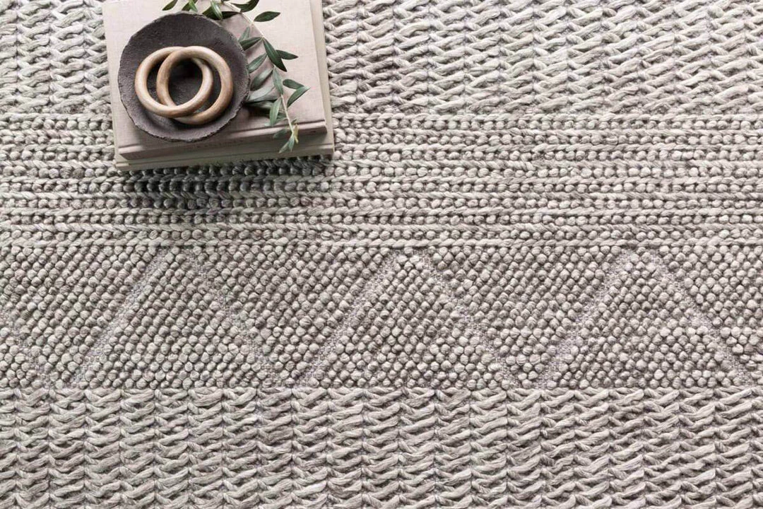 The Rowan Ash Rug is artfully hand-woven in India. The blend of cotton, viscose, polyester, wool and acrylic gives the floor covering a beautiful raw look with visible texture. The contrast of oversized knots and twisted yarns create the illusion of visual movement.