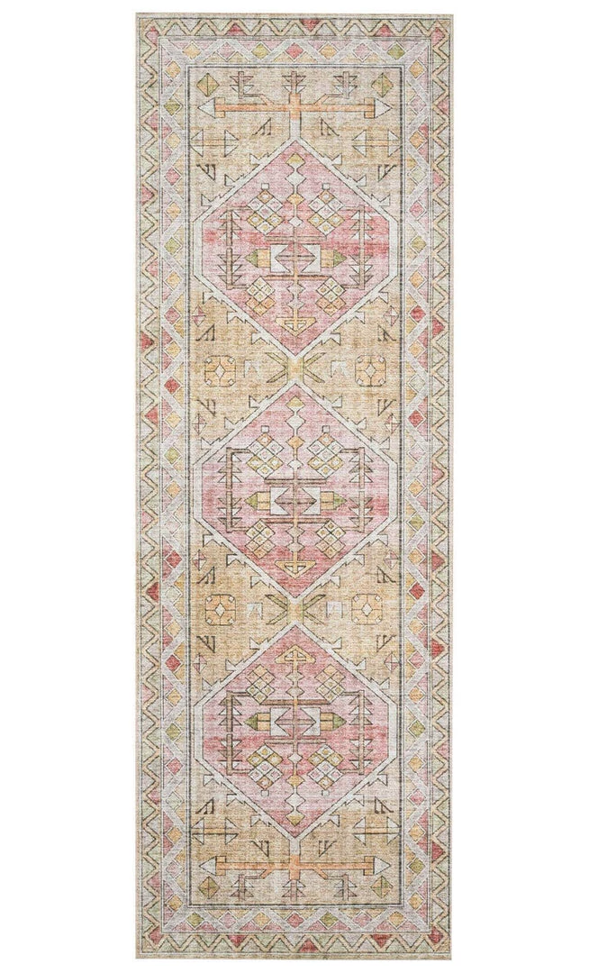 The Skye Gold / Blush Rug is a timeless and classic decor piece at an affordable price. With a beautiful, old-world detail printed on the power-loomed 100% polyester rug, this texture effect gives you the high-end look without the price.