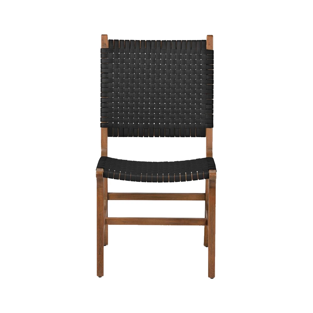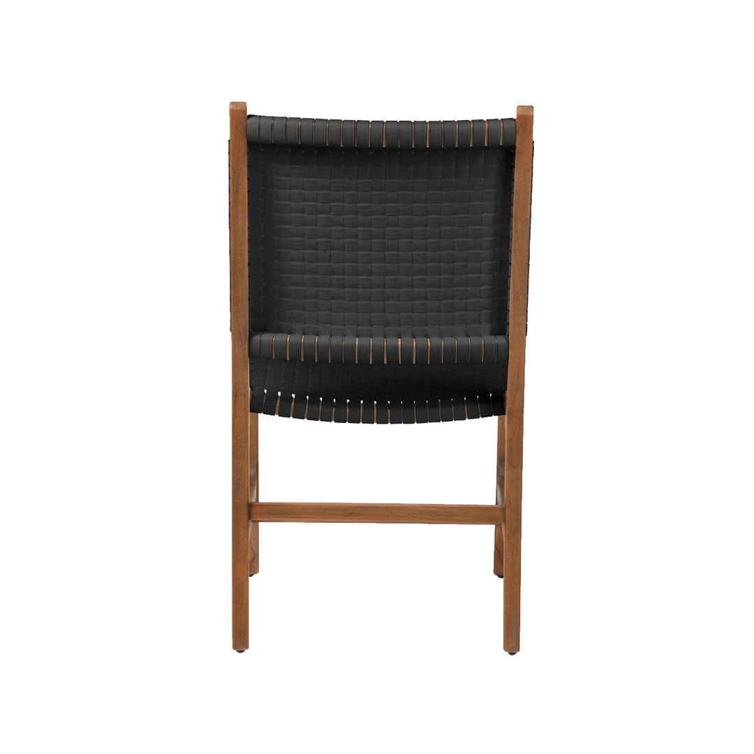 The Esterel Side Chair is a relaxed and dynamic seat constructed of a beautiful teak wood and featuring a woven faux rattan fabric that makes it suitable for both in indoor and outdoor dining use.