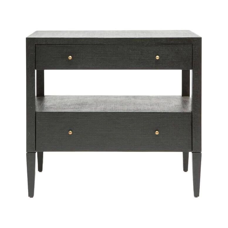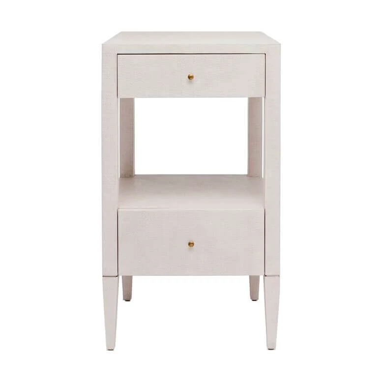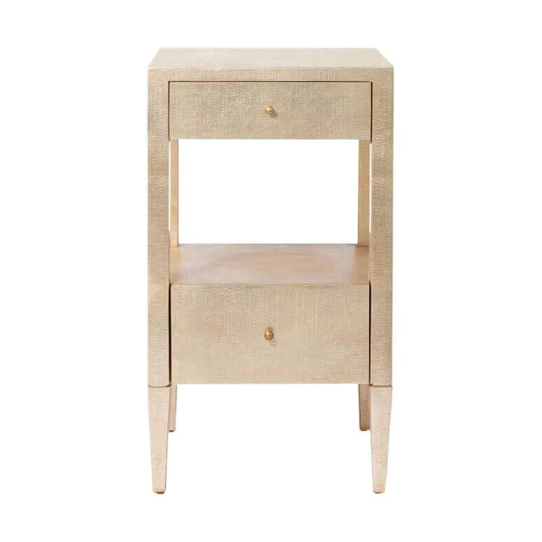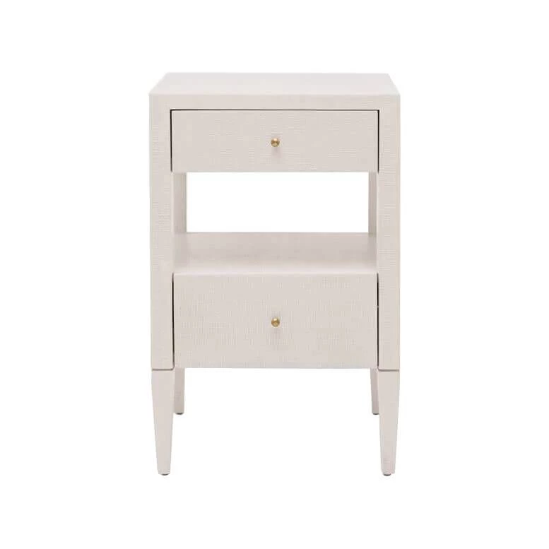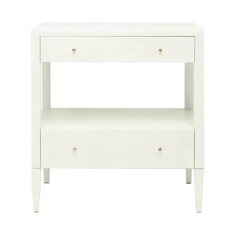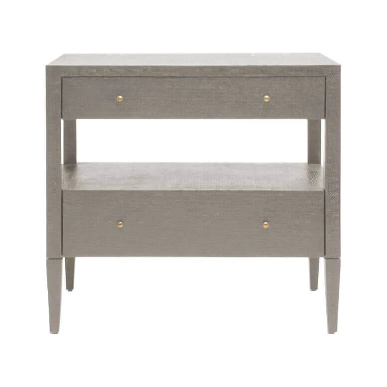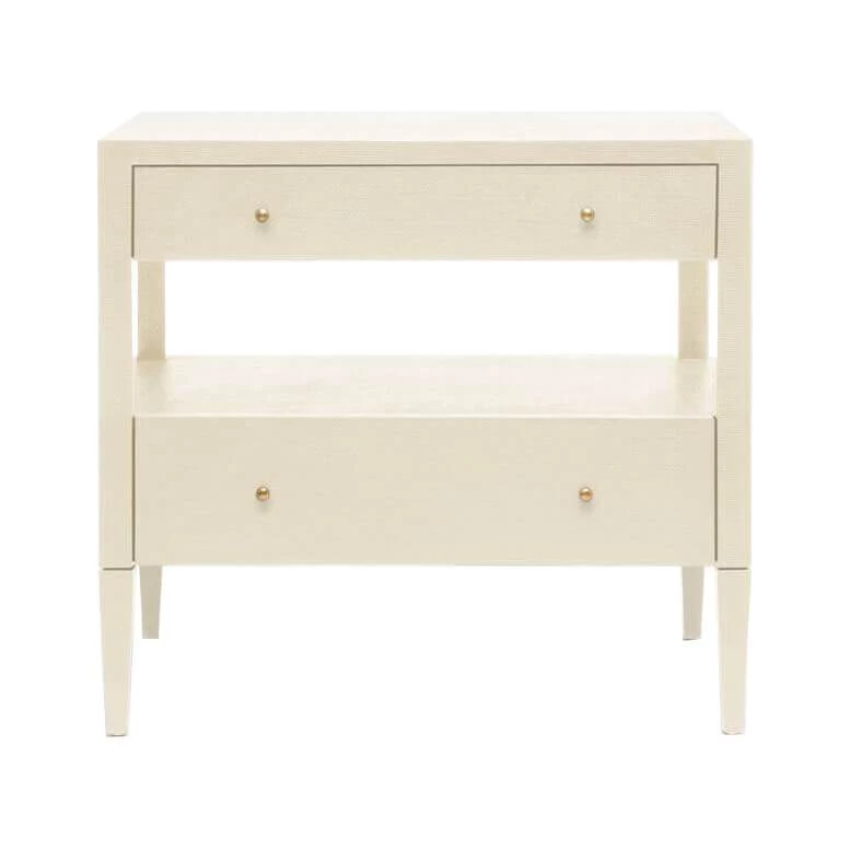 The Canton Nightstand is glamorous in faux raffia. Its beauty is matched by perfect proportions that are sensible and modern, brightening up any space it is in. As an added detail the drawers are lined with wood. The Canton is offered in a variety of finishes and four sizes.