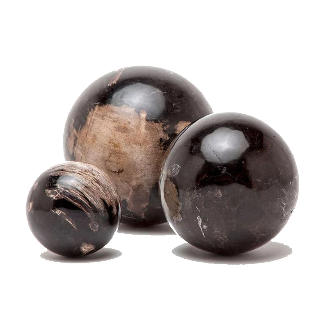 These one-of-a-kind spherical accents are the all-natural results of petrified wood. Polished to a gloss, the Rothbury highlights the exquisite natural beauty of centuries-old trees.