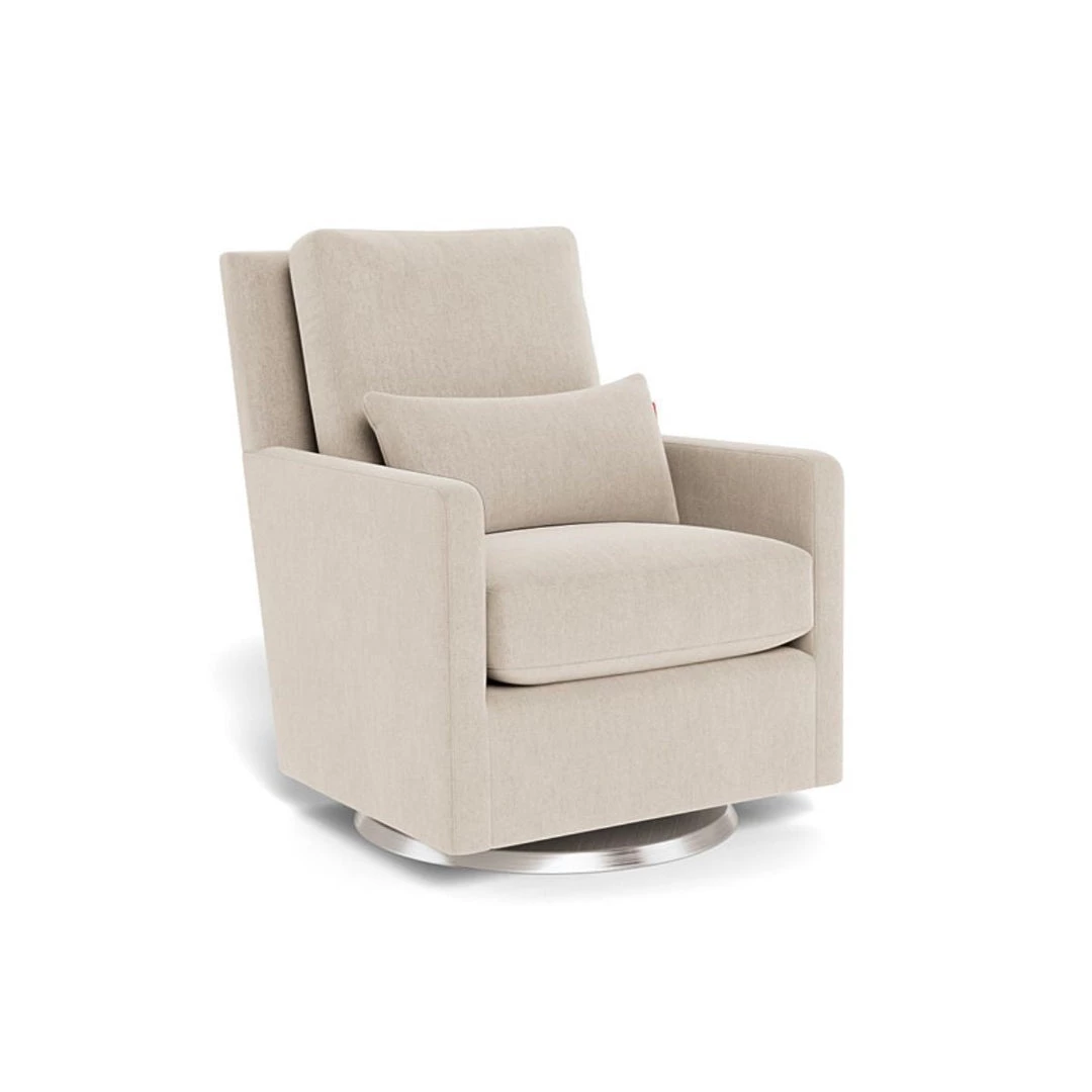 The Como Glider is soft and comfortable. Perfectly paired with the Como ottoman to sit back, put your feet up and relax. This Canadian handcrafted chair glides along a sleek, solid base. The cushions are filled with a down-like polyester filling for superior comfort. This glider comes in many colour variations as well as two glider base options and two swivel base options.