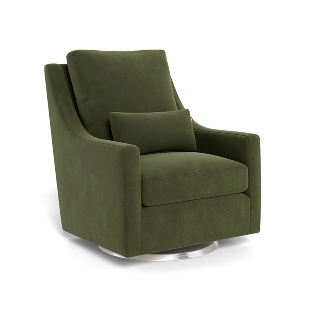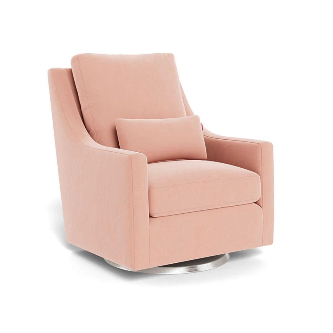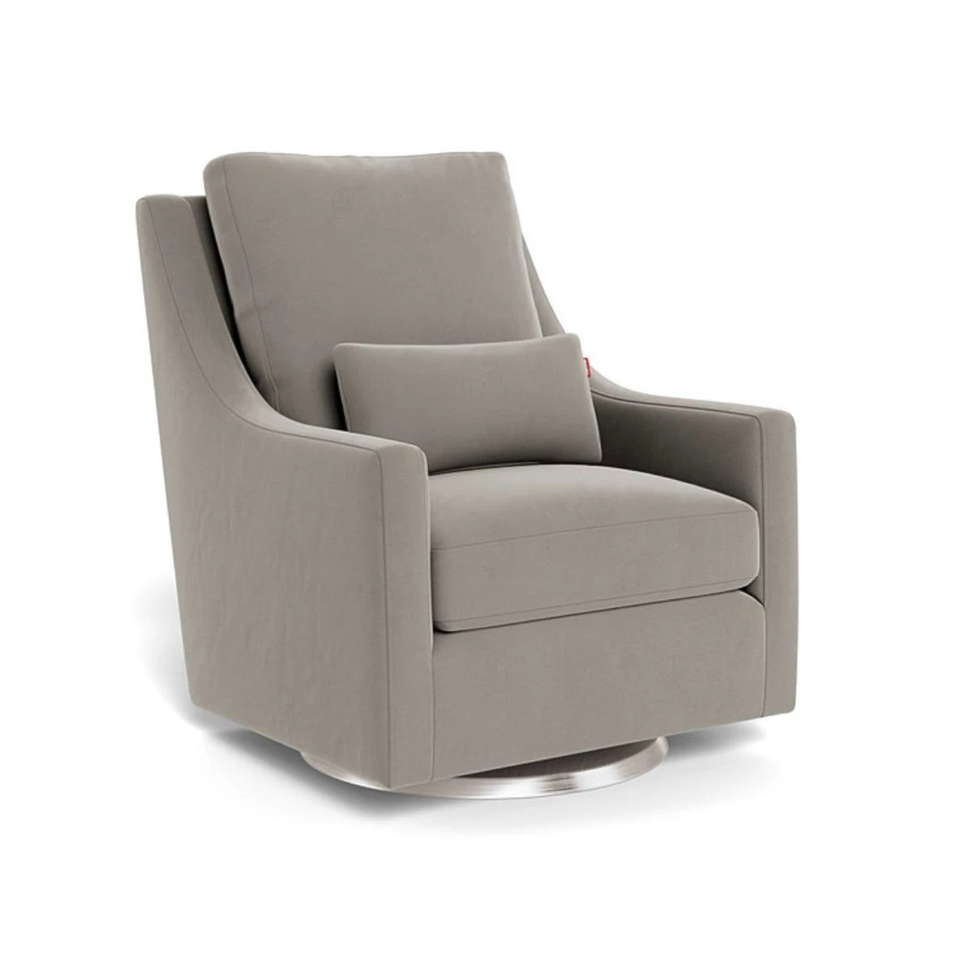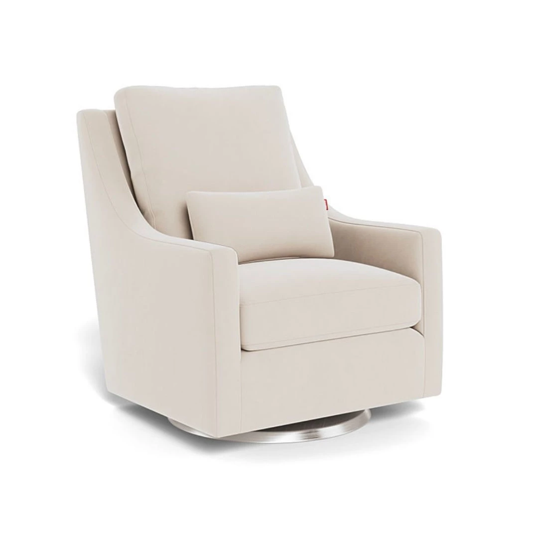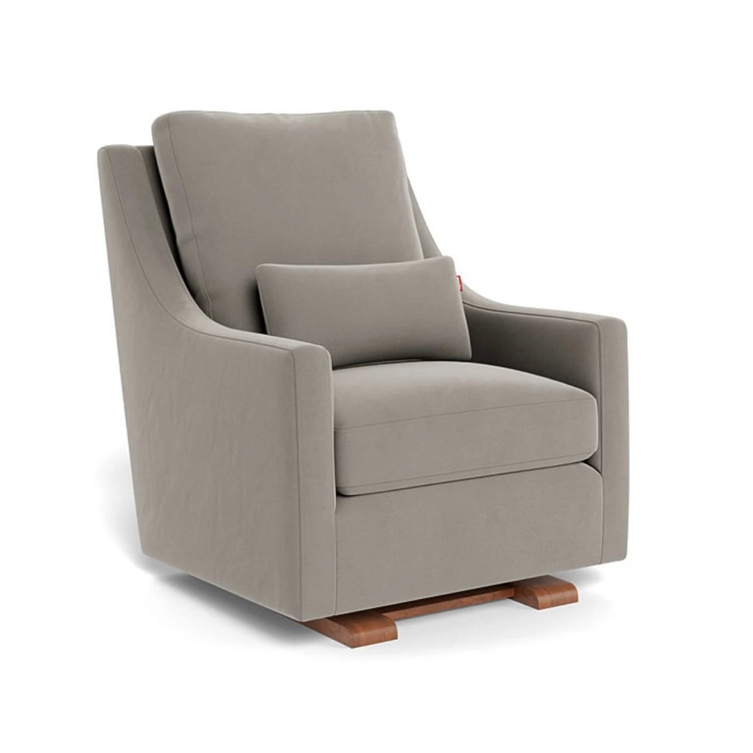 The creamy coloured, Vera Glider is soft and comfortable with its faux sheepskin fabric. Perfectly paired with the Vera ottoman to sit back, put your feet up and relax. This Canadian handcrafted chair glides along a sleek, solid wood base in the colour espresso. The cushions are filled with a down-like polyester filling for superior comfort. This glider comes in many colour variations as well as two glider base options and two swivel base options.