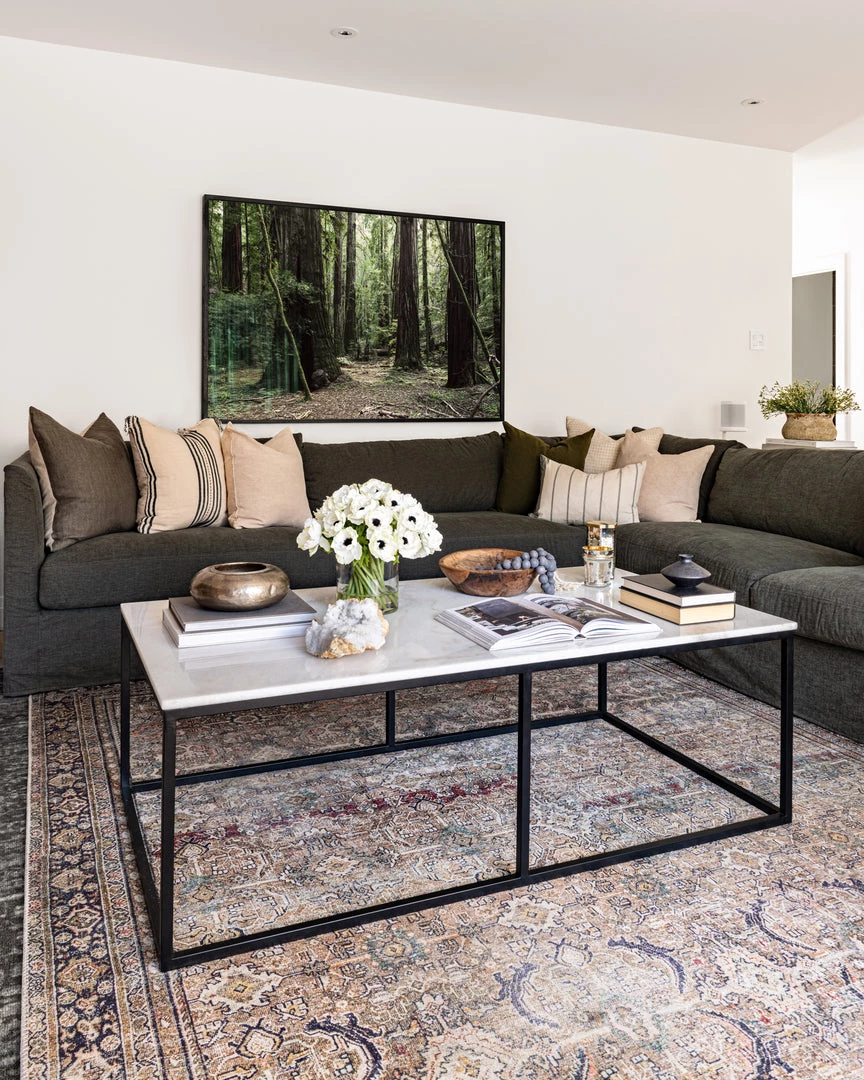 The Bennington Coffee Table has a slim black metal frame supporting a natural quartz tabletop. The bold lines are contrasted by the elegant quartz to bring refinement to your decor.