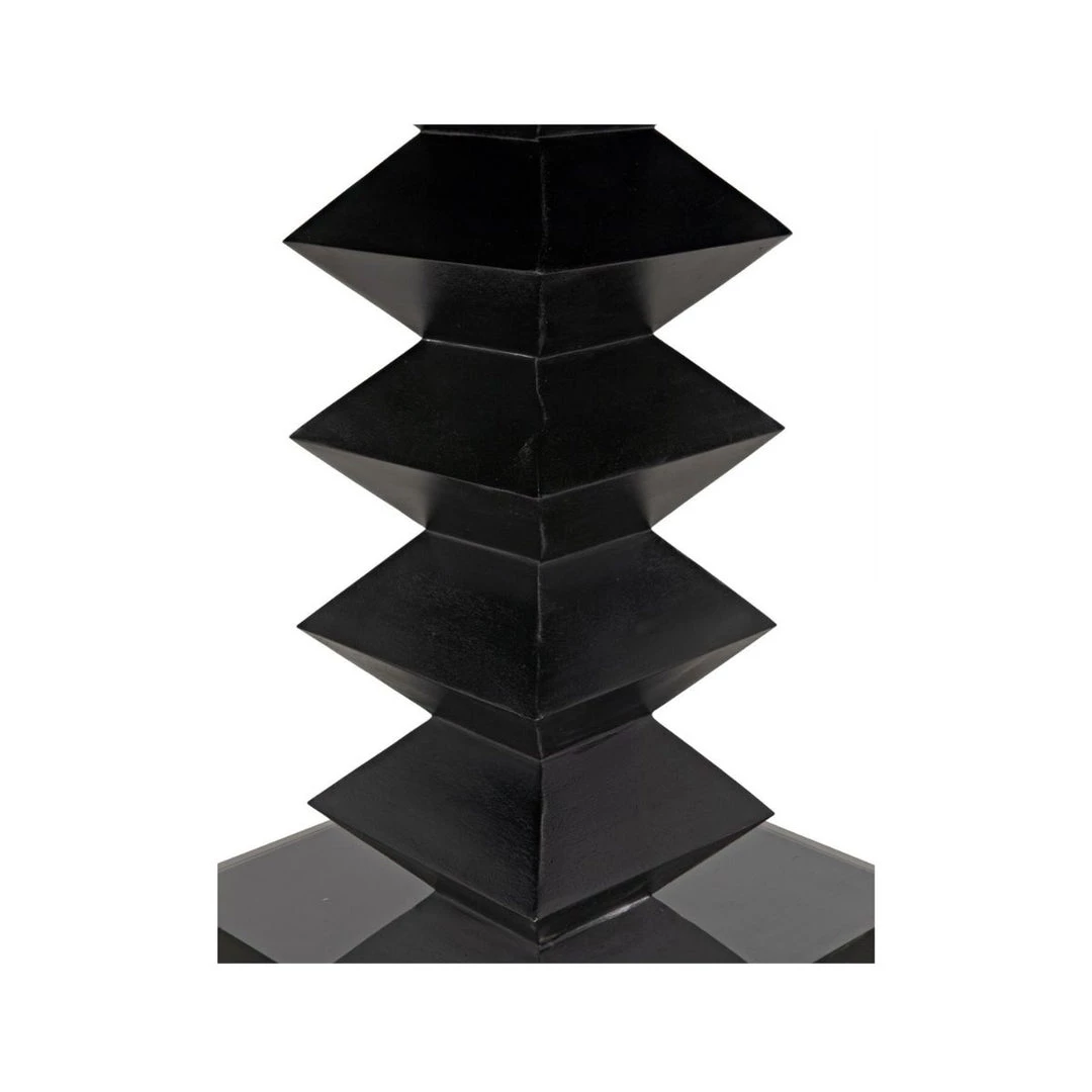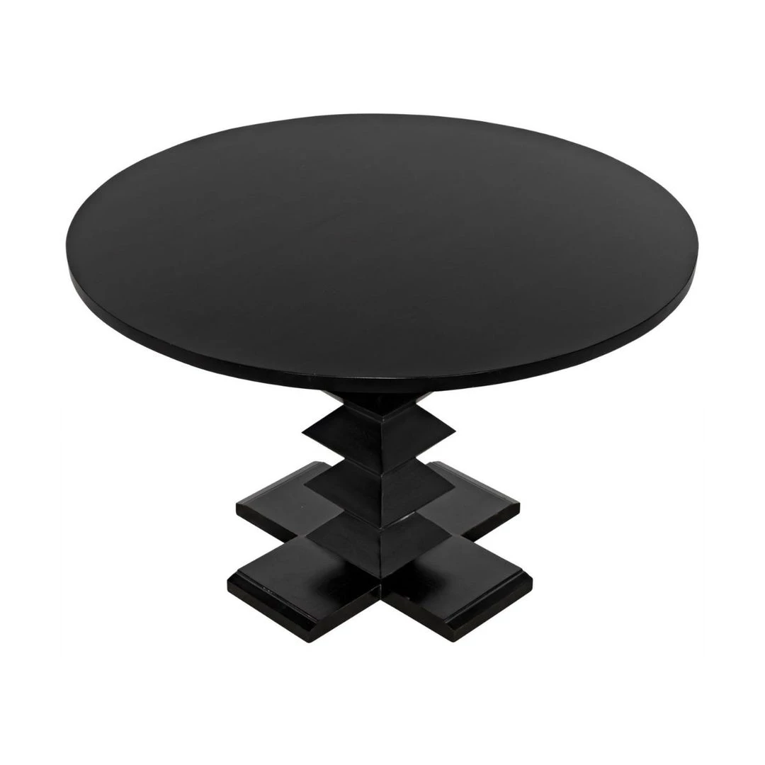 The Burlington Dining Table features a unique “zig-zag” style base for a modern feel. The mahogany hand rubbed black finish offers a bold statement, and the compact size creates the perfect table for any dining room.